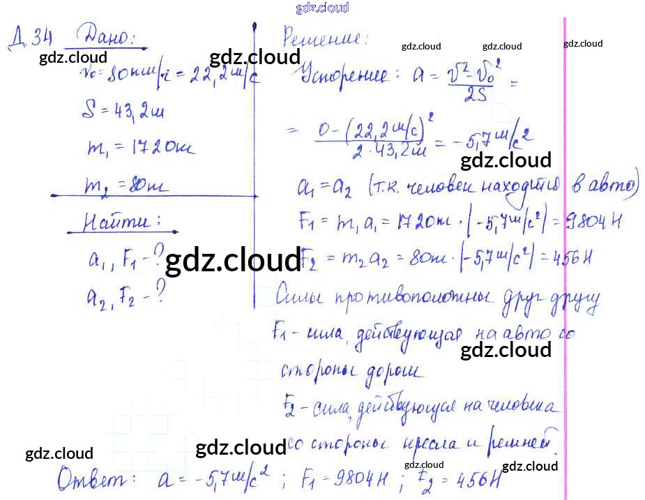 Ответ на задание 34 Сборник задач Физика за 7, 8, 9 (седьмой, восьмой, девятый) класс Лукашик, Иванова 2011