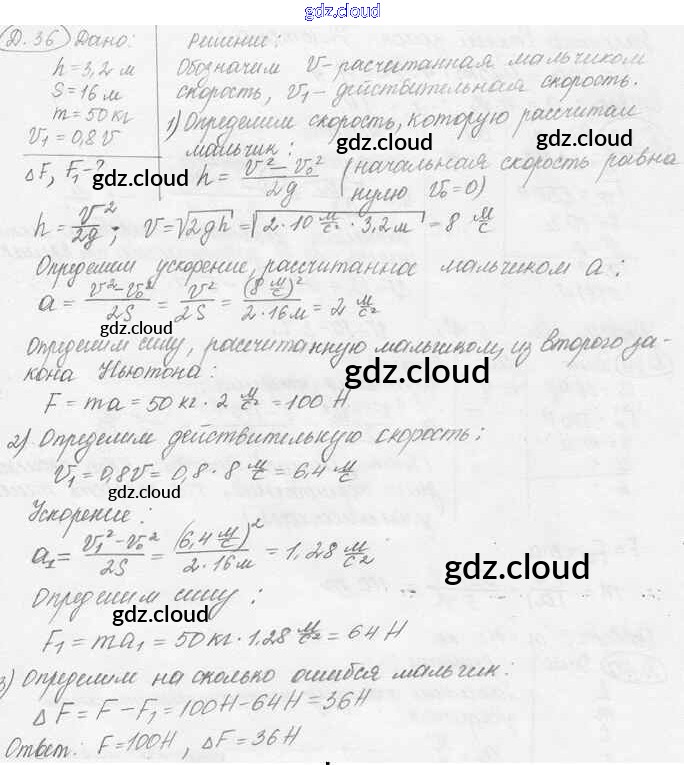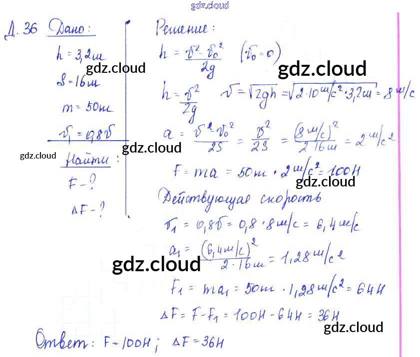 Ответ на задание 36 Сборник задач Физика за 7, 8, 9 (седьмой, восьмой, девятый) класс Лукашик, Иванова 2011