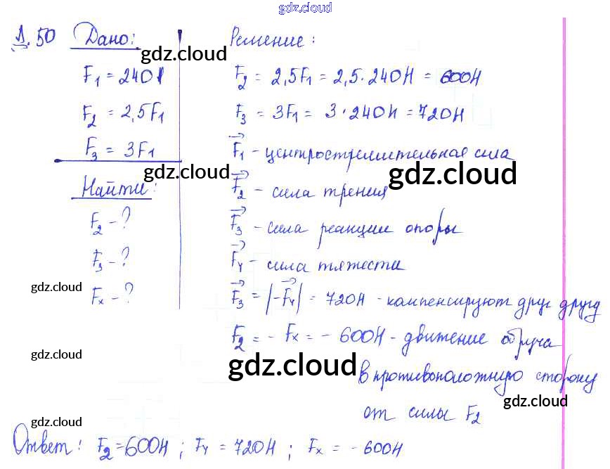 Ответ на задание 50 Сборник задач Физика за 7, 8, 9 (седьмой, восьмой, девятый) класс Лукашик, Иванова 2011