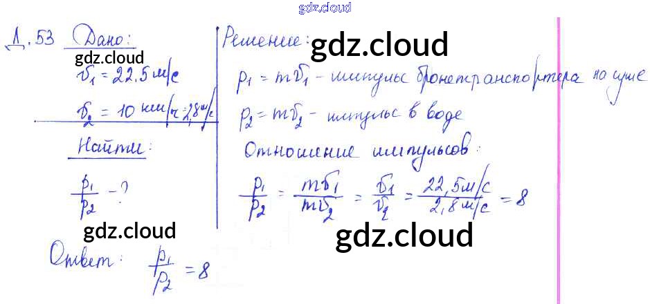 Ответ на задание 53 Сборник задач Физика за 7, 8, 9 (седьмой, восьмой, девятый) класс Лукашик, Иванова 2011