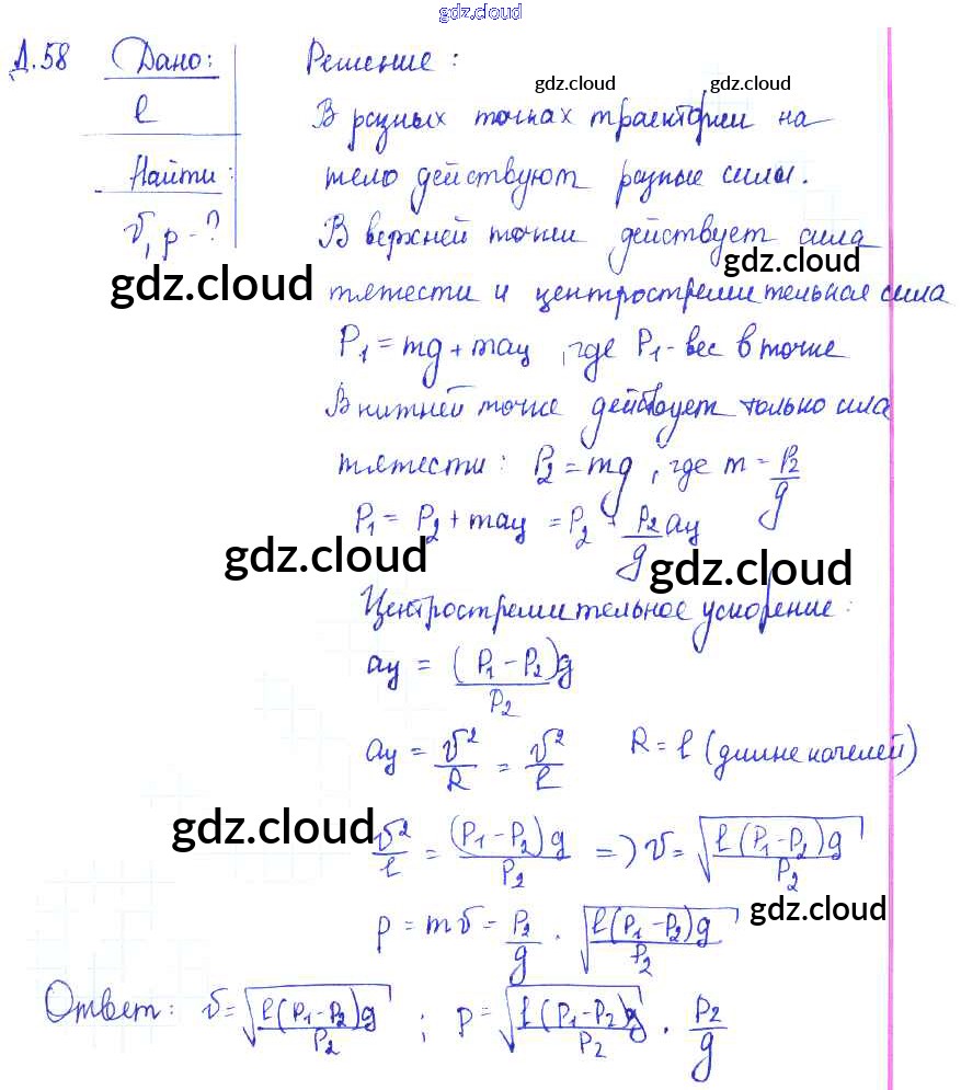 Ответ на задание 58 Сборник задач Физика за 7, 8, 9 (седьмой, восьмой, девятый) класс Лукашик, Иванова 2011