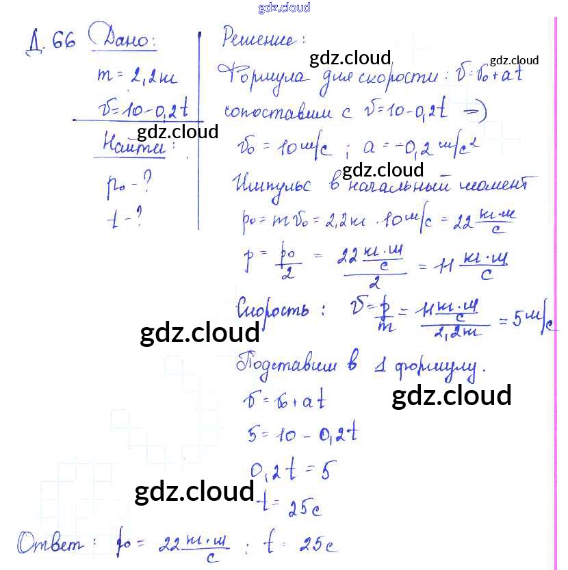 Ответ на задание 66 Сборник задач Физика за 7, 8, 9 (седьмой, восьмой, девятый) класс Лукашик, Иванова 2011