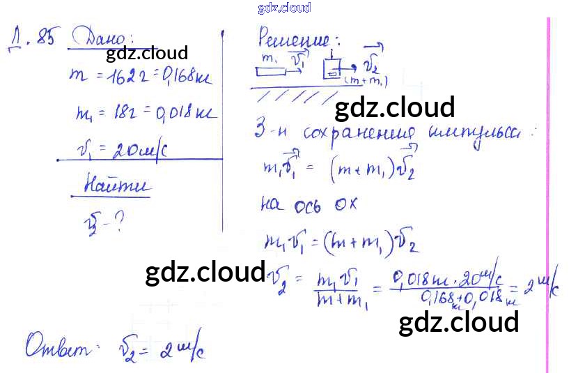 Ответ на задание 85 Сборник задач Физика за 7, 8, 9 (седьмой, восьмой, девятый) класс Лукашик, Иванова 2011