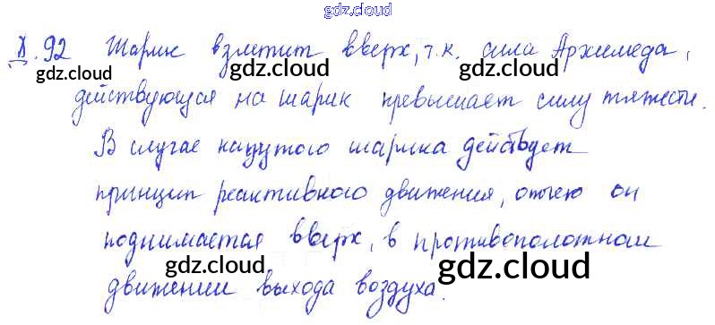 Ответ на задание 92 Сборник задач Физика за 7, 8, 9 (седьмой, восьмой, девятый) класс Лукашик, Иванова 2011