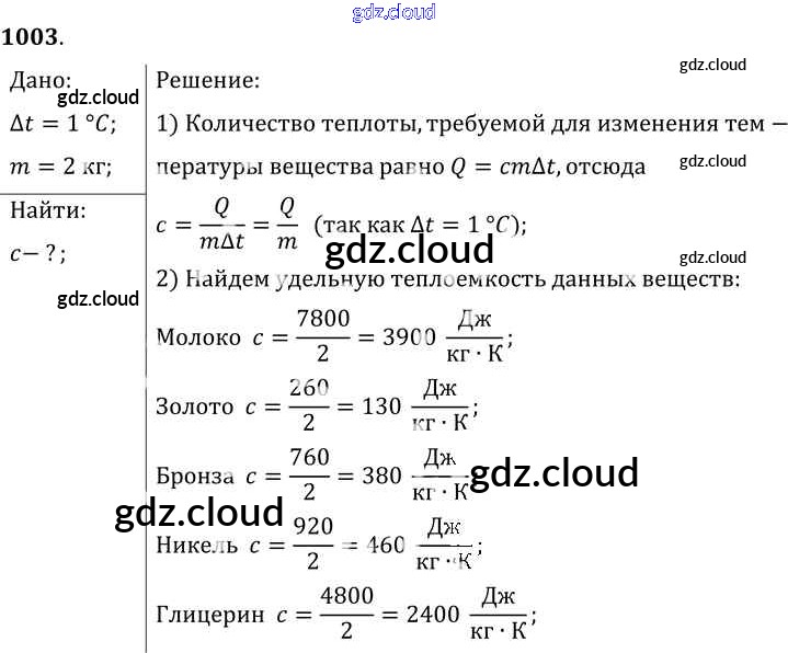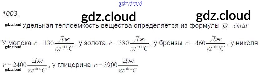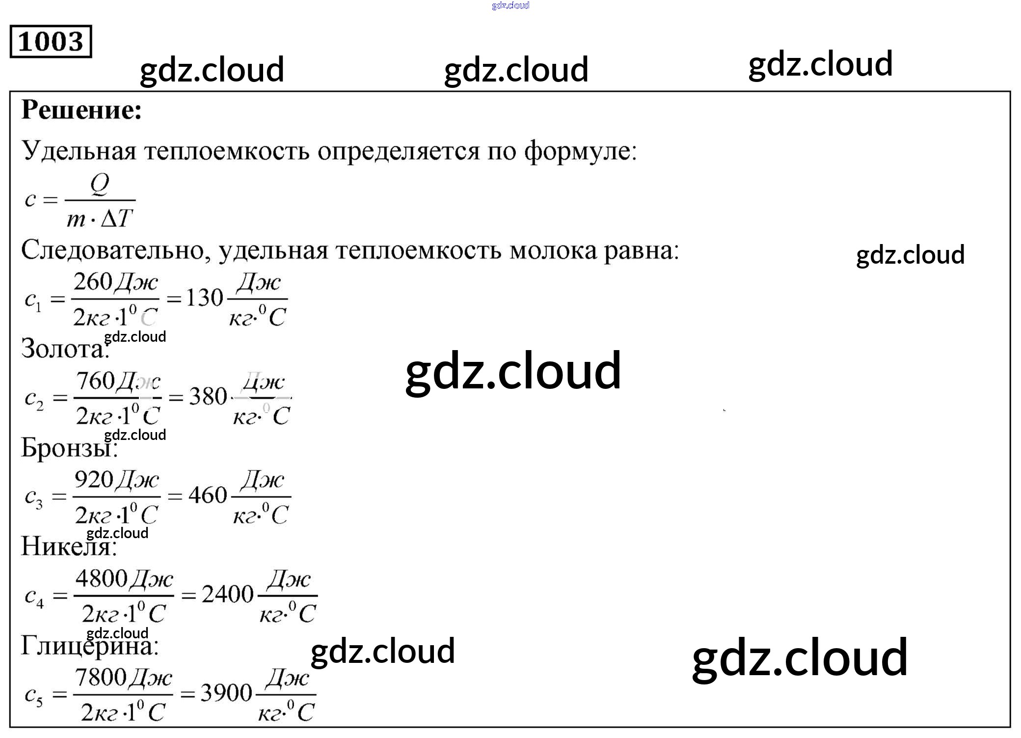 Ответ на задание 1003 Сборник задач Физика за 7, 8, 9 (седьмой, восьмой, девятый) класс Лукашик, Иванова 2011