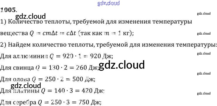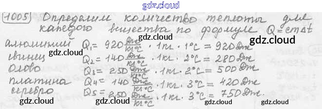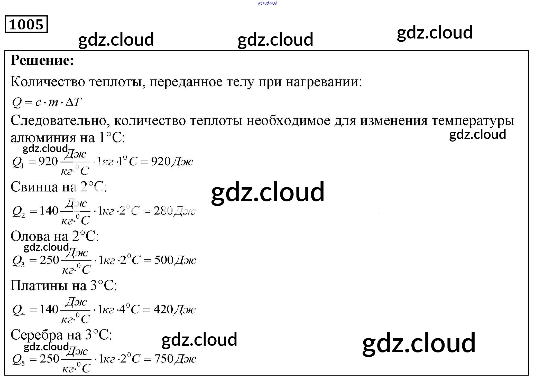 Ответ на задание 1005 Сборник задач Физика за 7, 8, 9 (седьмой, восьмой, девятый) класс Лукашик, Иванова 2011