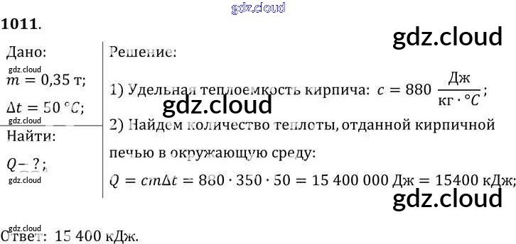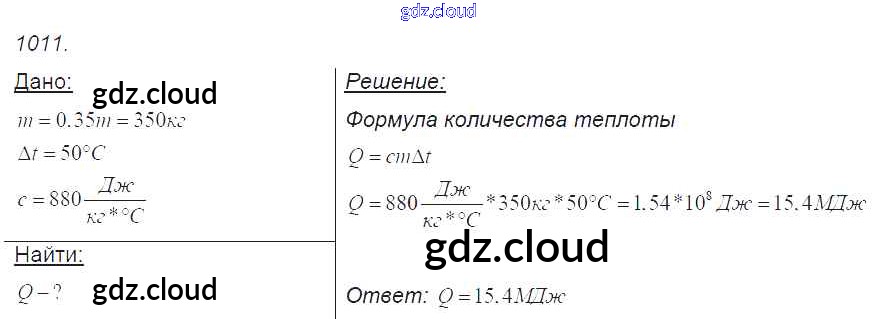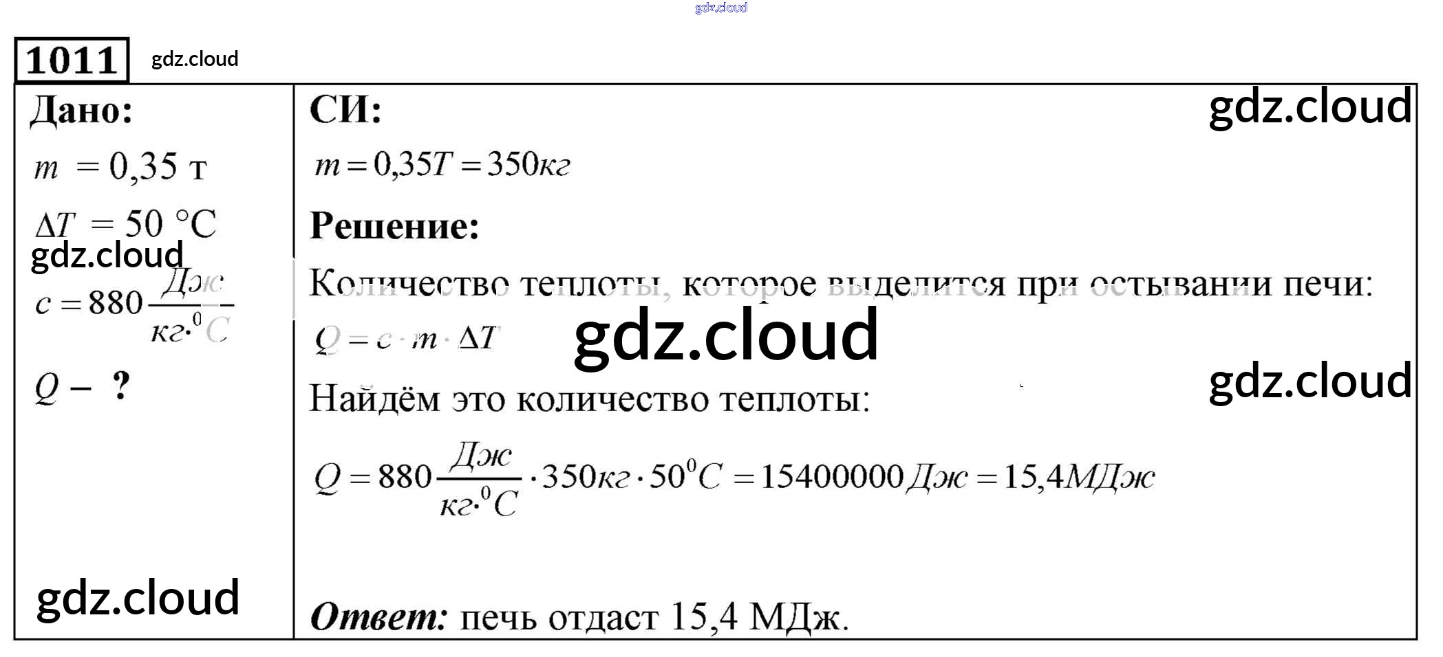 Ответ на задание 1011 Сборник задач Физика за 7, 8, 9 (седьмой, восьмой, девятый) класс Лукашик, Иванова 2011