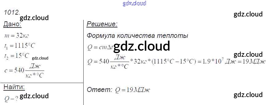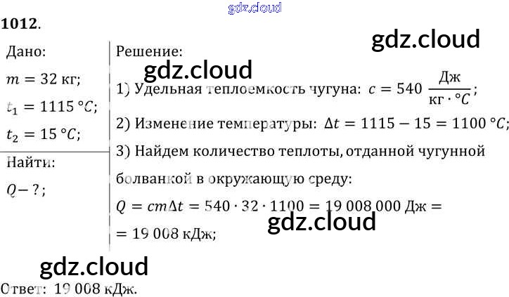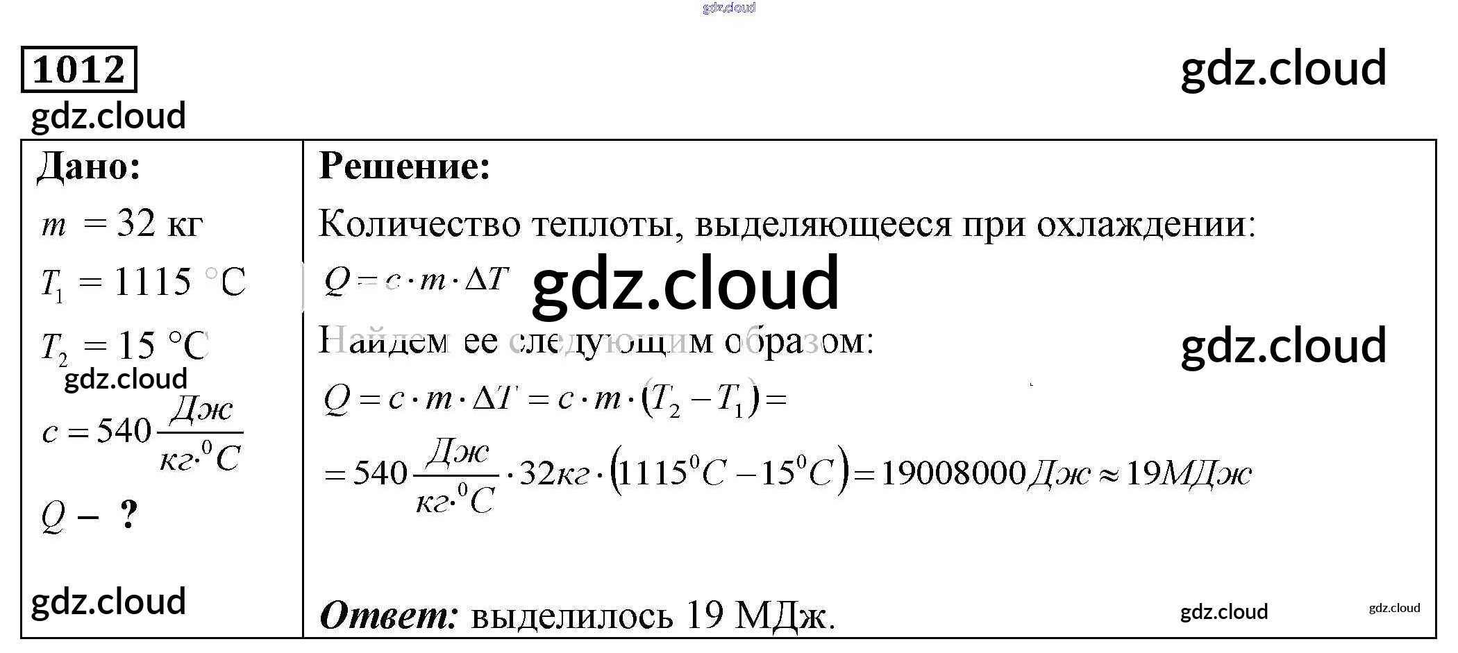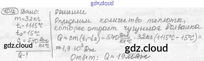 Ответ на задание 1012 Сборник задач Физика за 7, 8, 9 (седьмой, восьмой, девятый) класс Лукашик, Иванова 2011