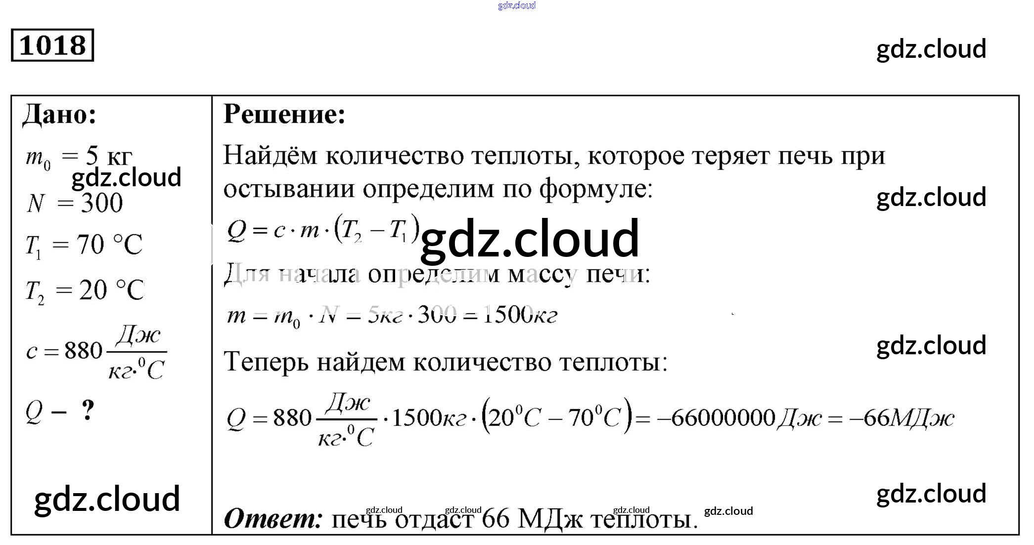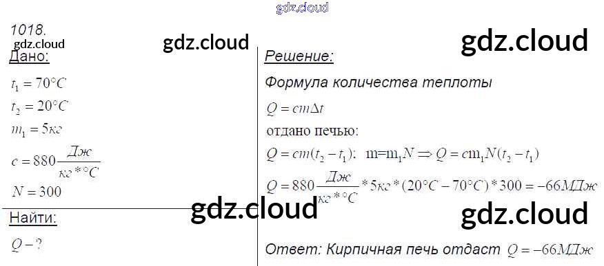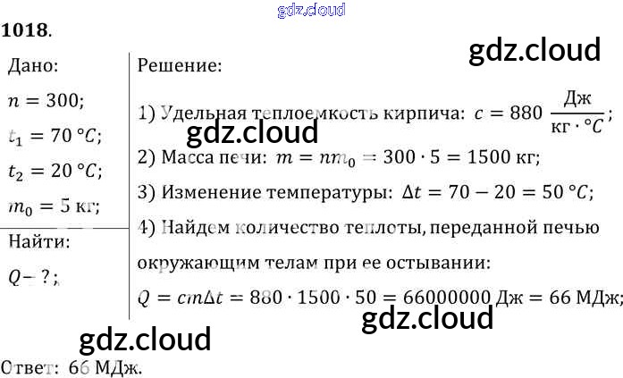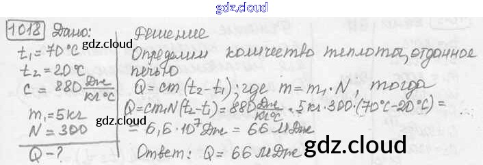 Ответ на задание 1018 Сборник задач Физика за 7, 8, 9 (седьмой, восьмой, девятый) класс Лукашик, Иванова 2011