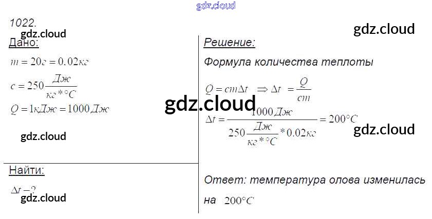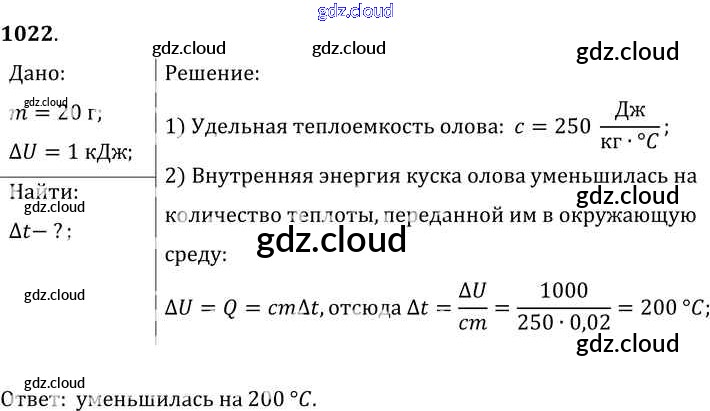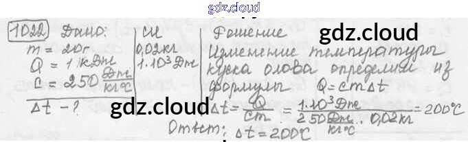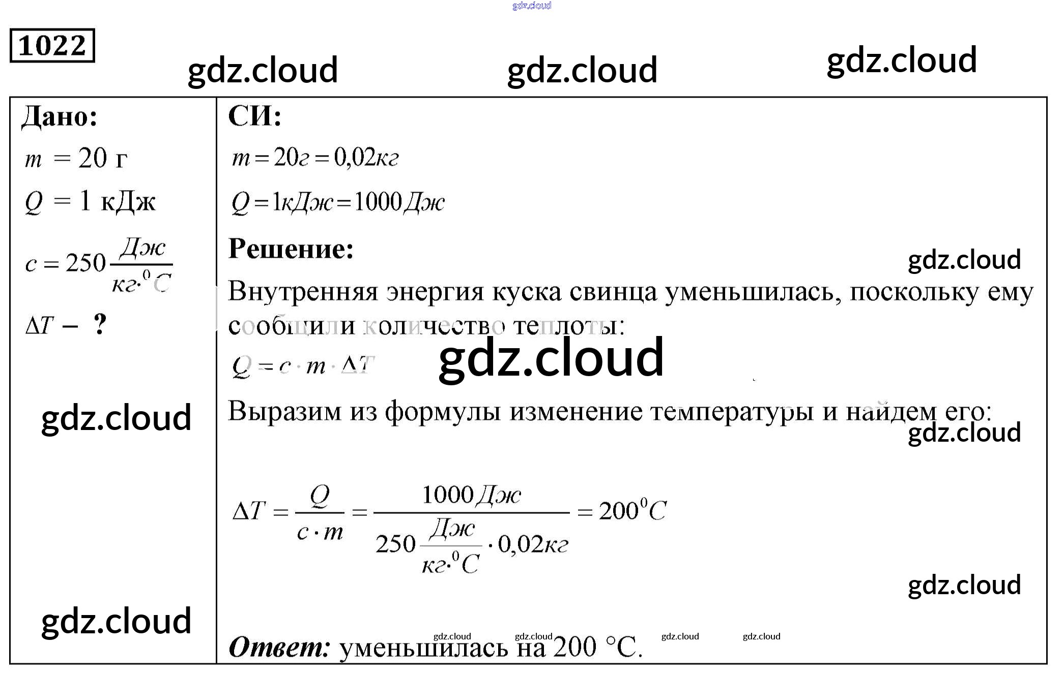 Ответ на задание 1022 Сборник задач Физика за 7, 8, 9 (седьмой, восьмой, девятый) класс Лукашик, Иванова 2011