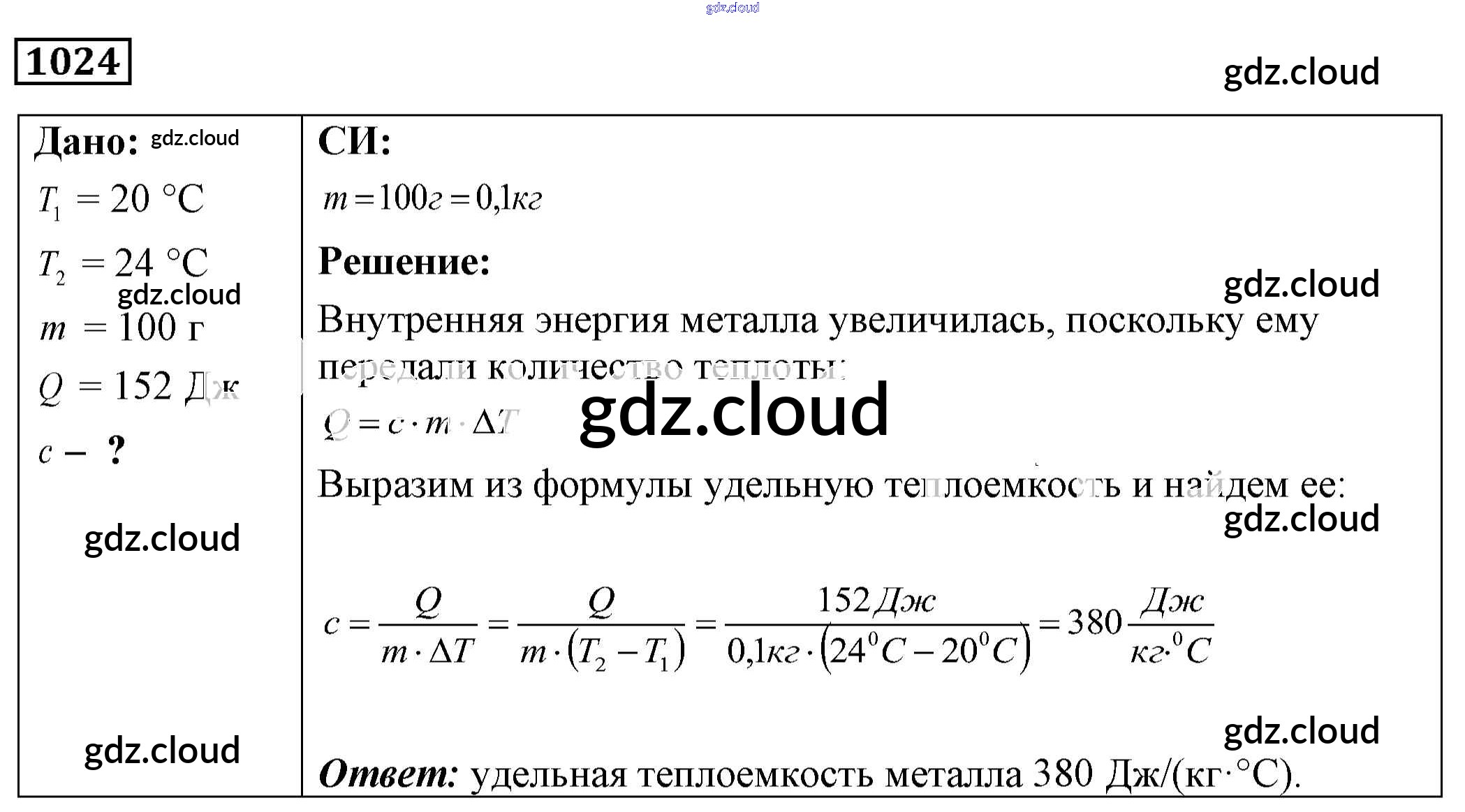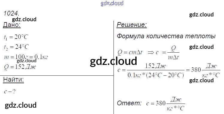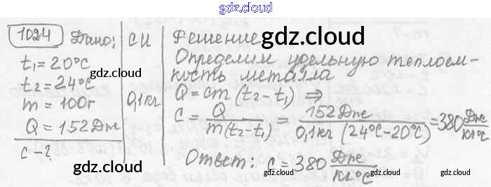 Ответ на задание 1024 Сборник задач Физика за 7, 8, 9 (седьмой, восьмой, девятый) класс Лукашик, Иванова 2011