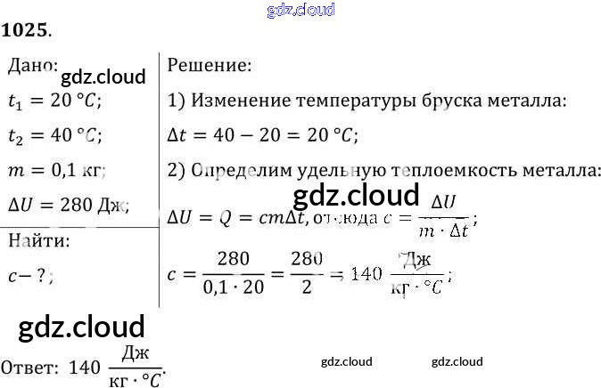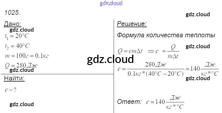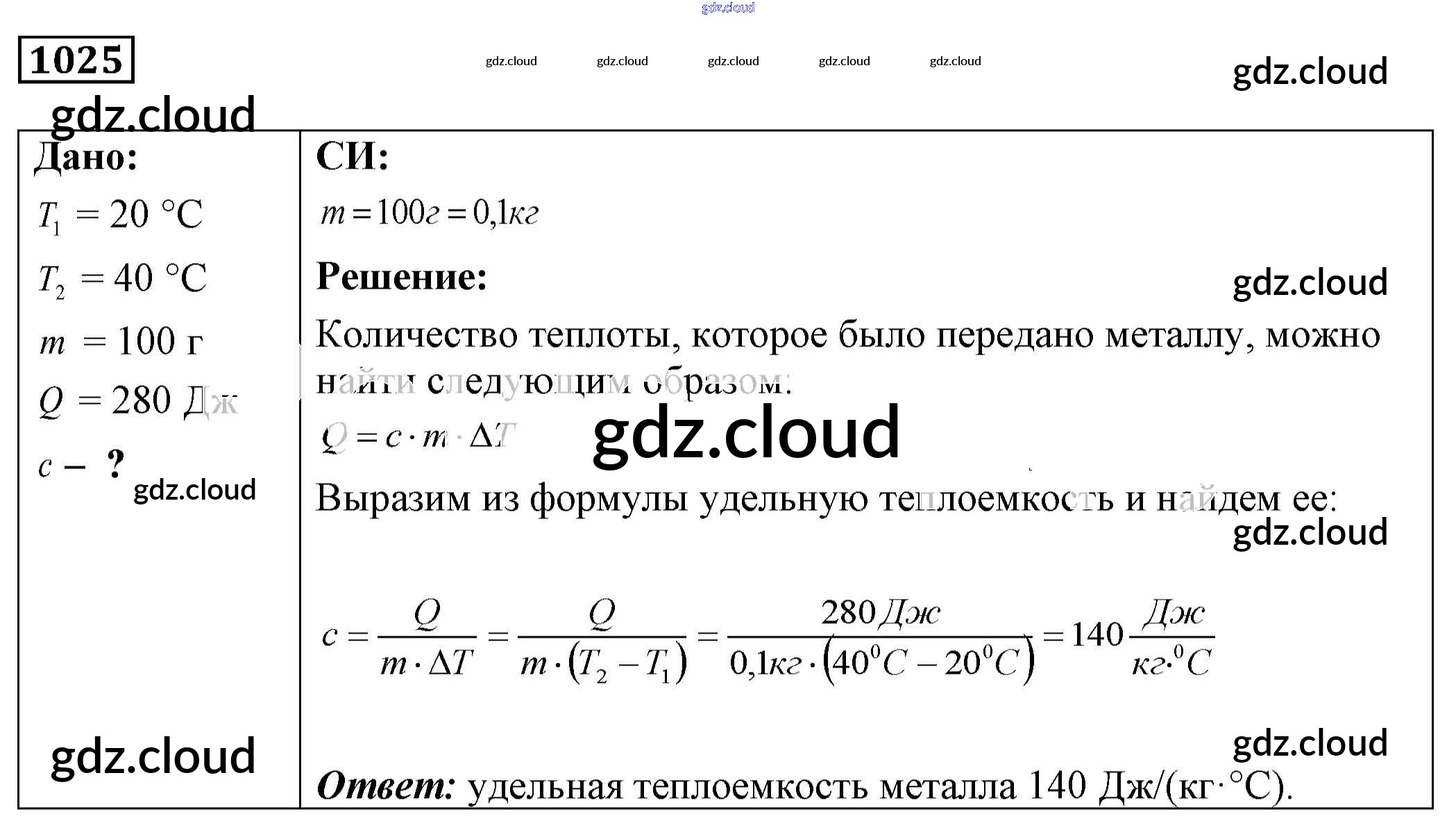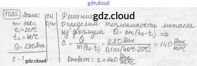 Ответ на задание 1025 Сборник задач Физика за 7, 8, 9 (седьмой, восьмой, девятый) класс Лукашик, Иванова 2011