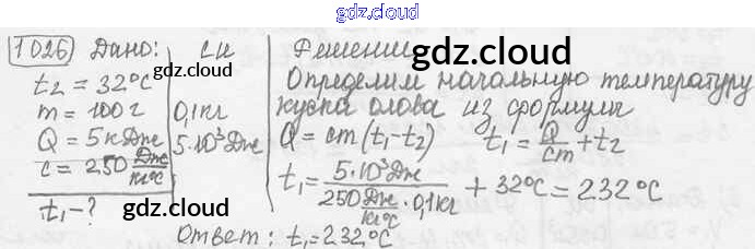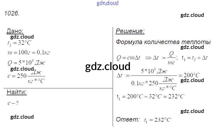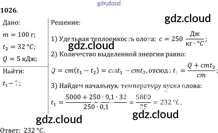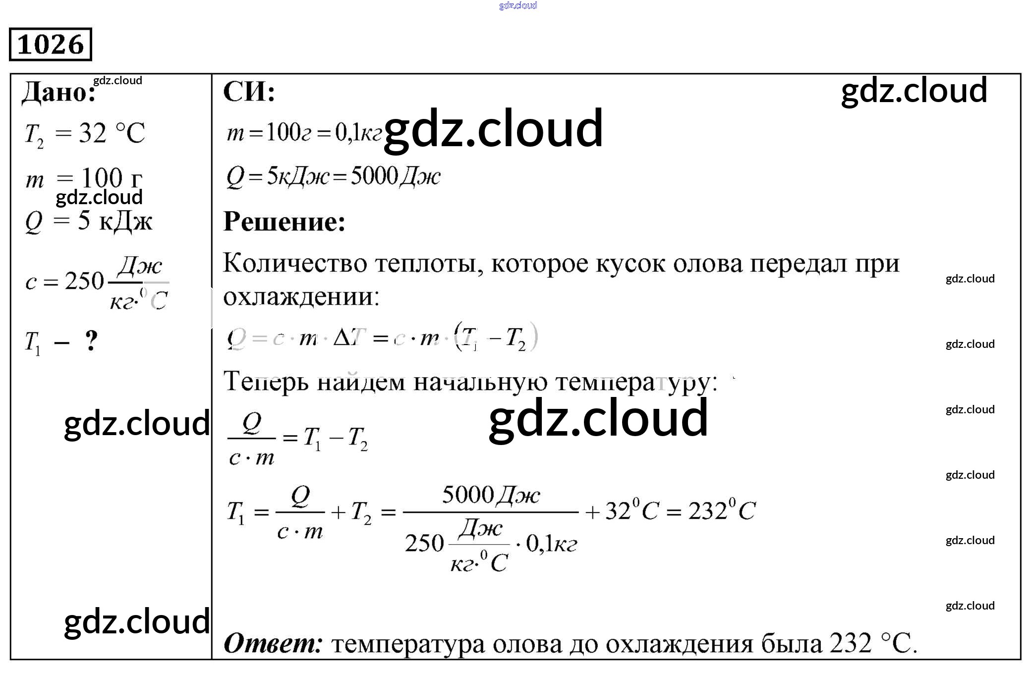 Ответ на задание 1026 Сборник задач Физика за 7, 8, 9 (седьмой, восьмой, девятый) класс Лукашик, Иванова 2011