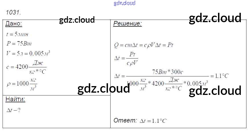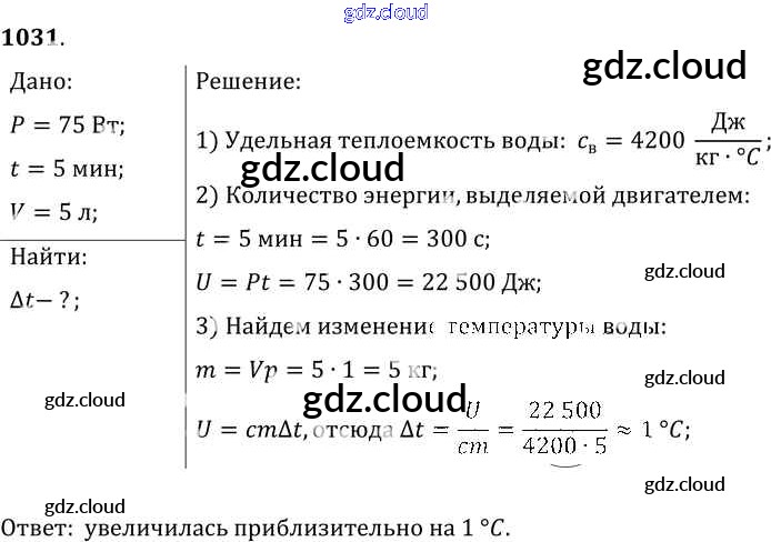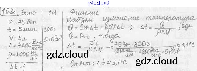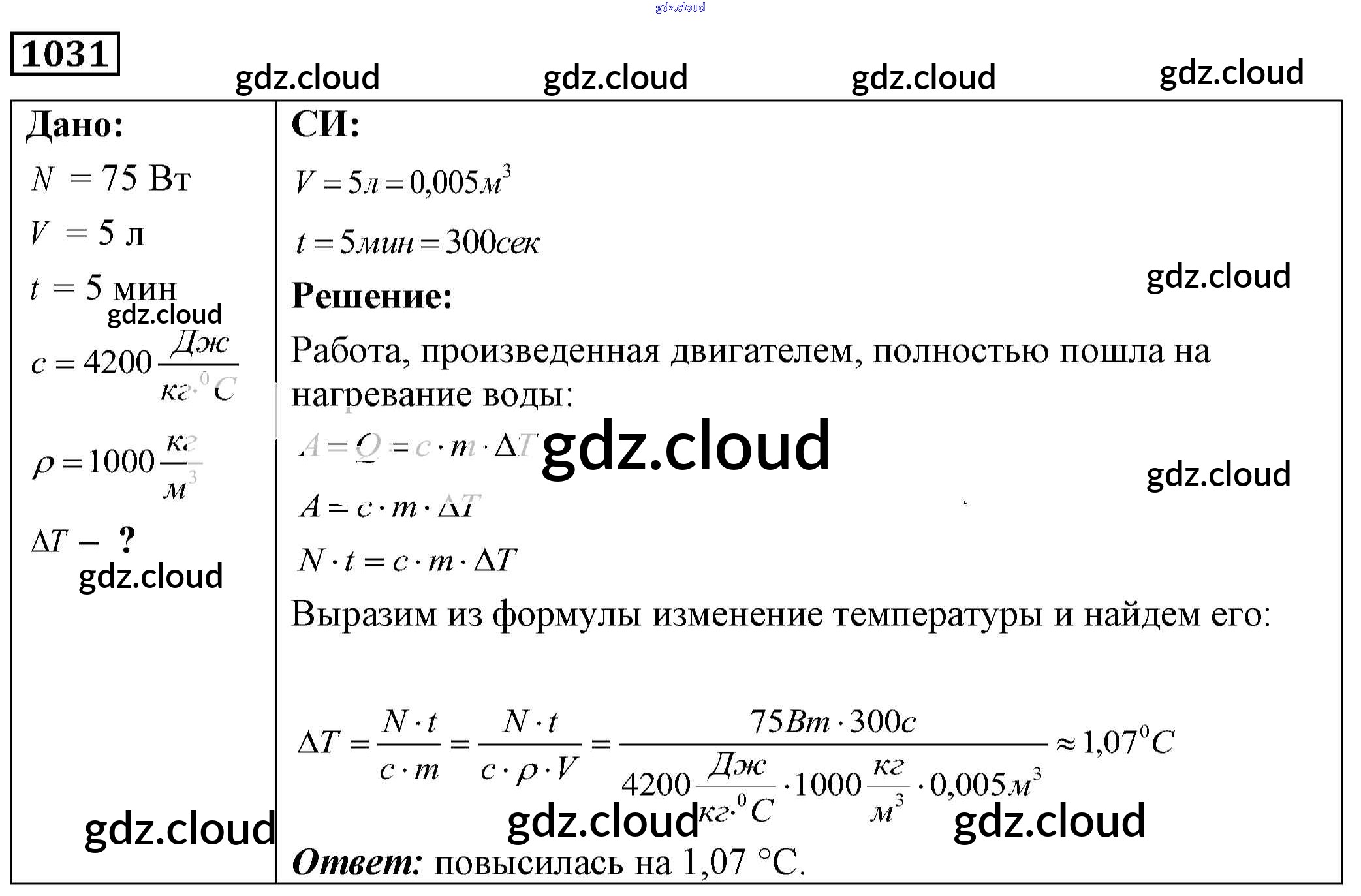 Ответ на задание 1031 Сборник задач Физика за 7, 8, 9 (седьмой, восьмой, девятый) класс Лукашик, Иванова 2011