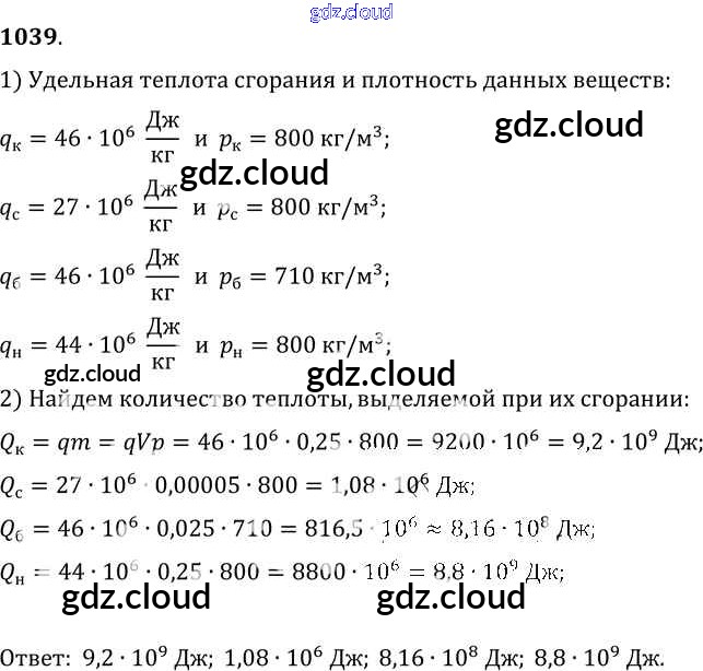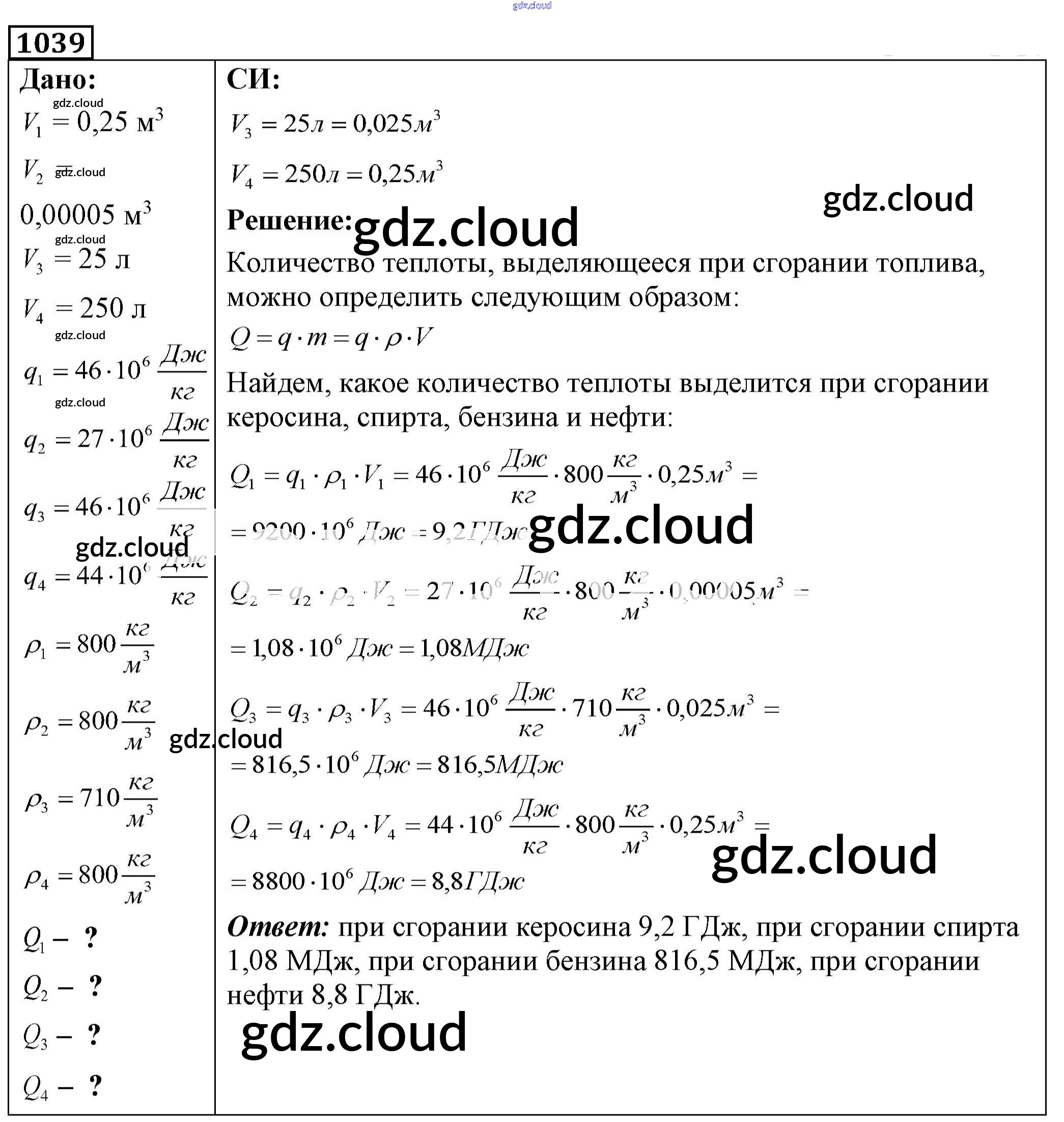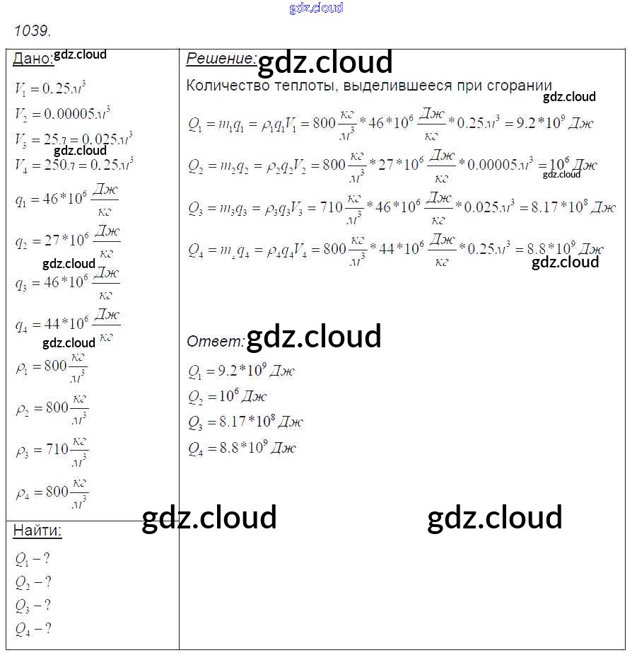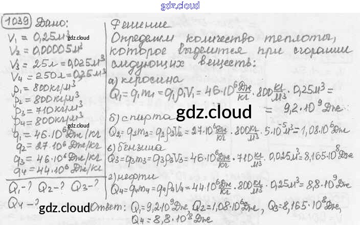 Ответ на задание 1039 Сборник задач Физика за 7, 8, 9 (седьмой, восьмой, девятый) класс Лукашик, Иванова 2011