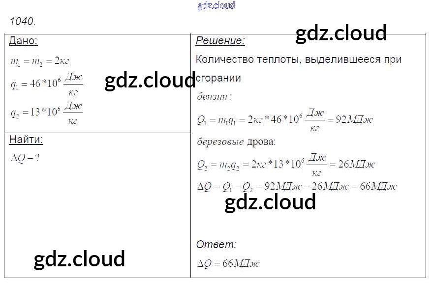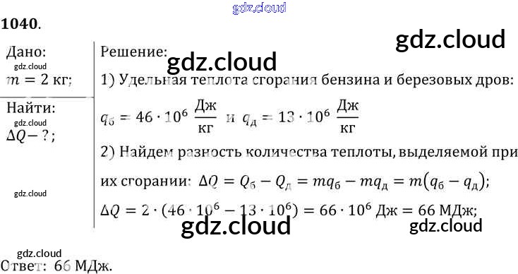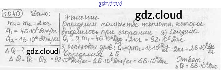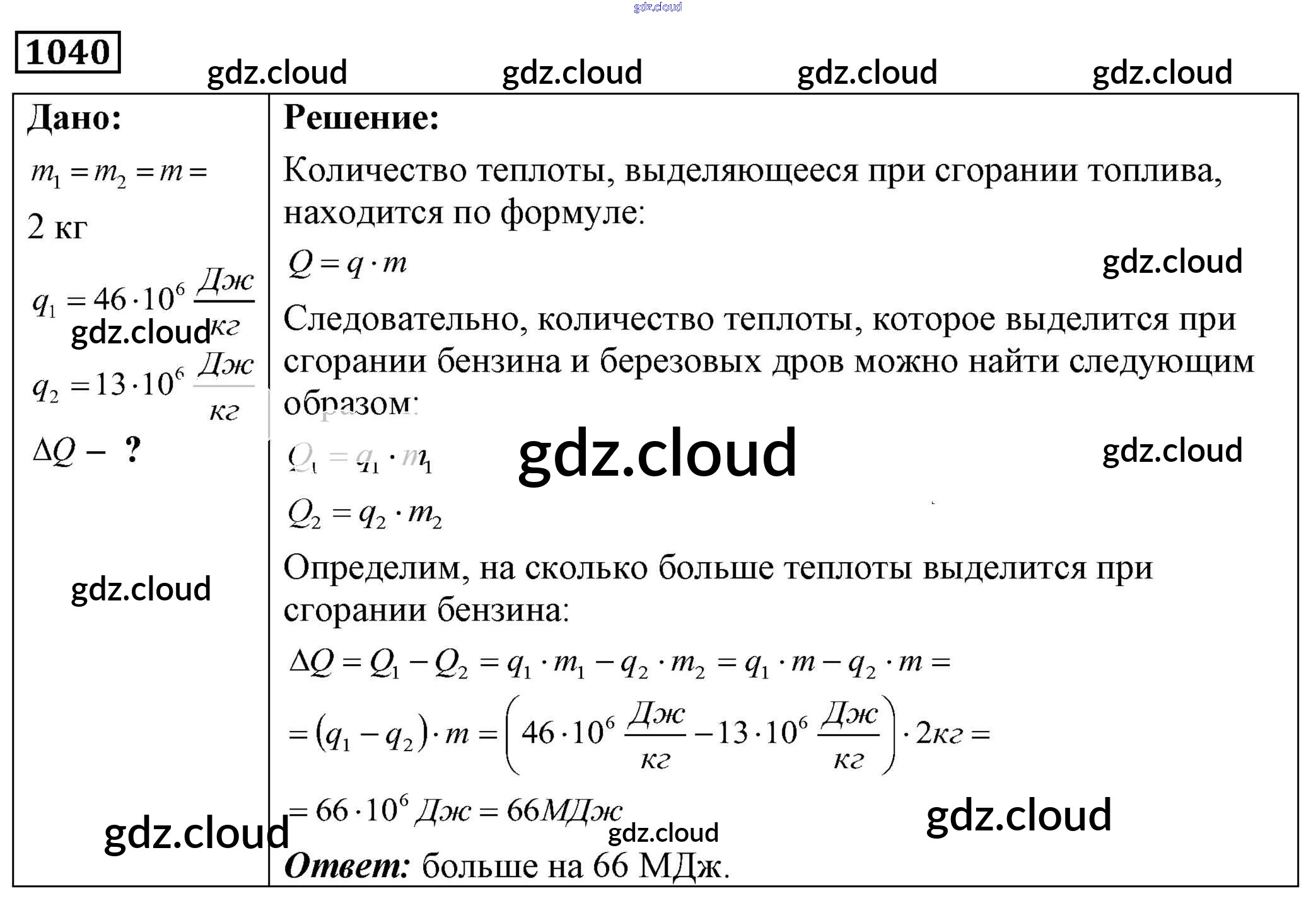 Ответ на задание 1040 Сборник задач Физика за 7, 8, 9 (седьмой, восьмой, девятый) класс Лукашик, Иванова 2011
