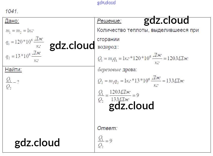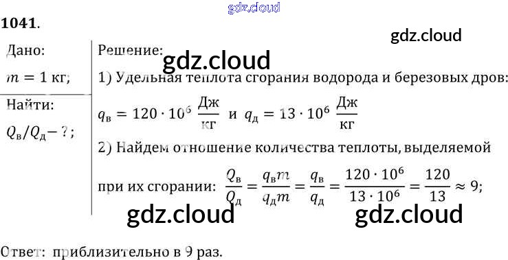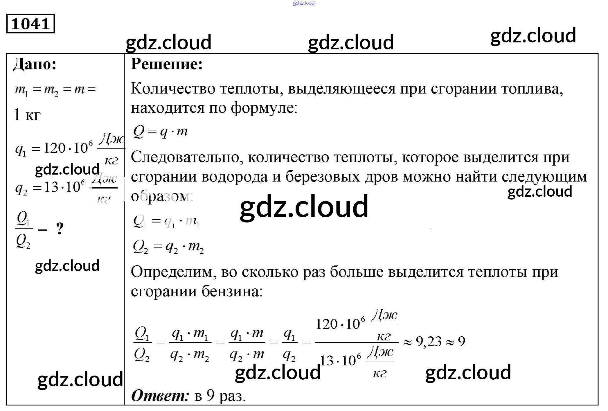 Ответ на задание 1041 Сборник задач Физика за 7, 8, 9 (седьмой, восьмой, девятый) класс Лукашик, Иванова 2011