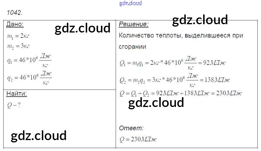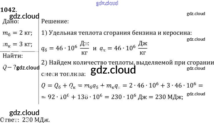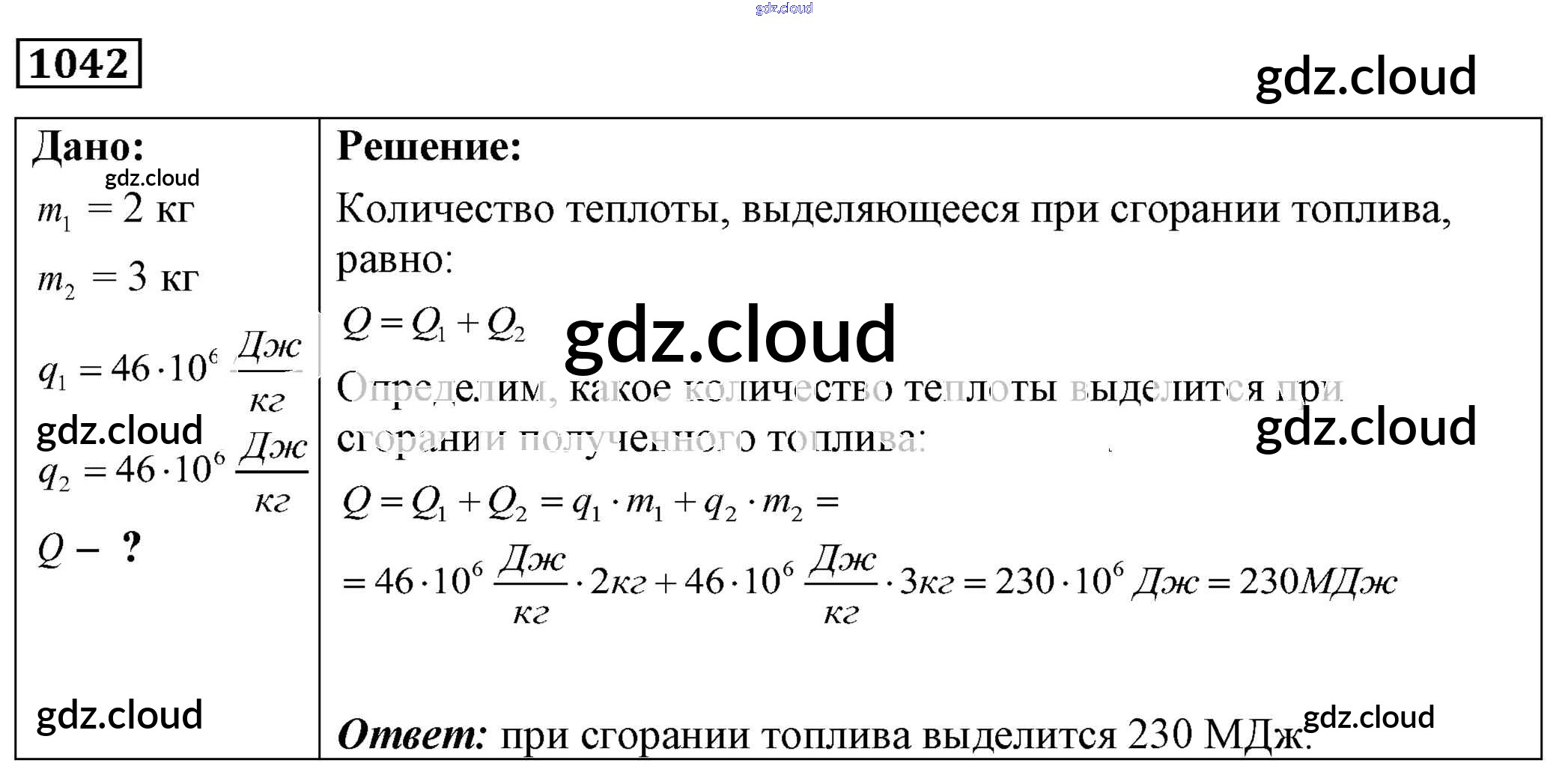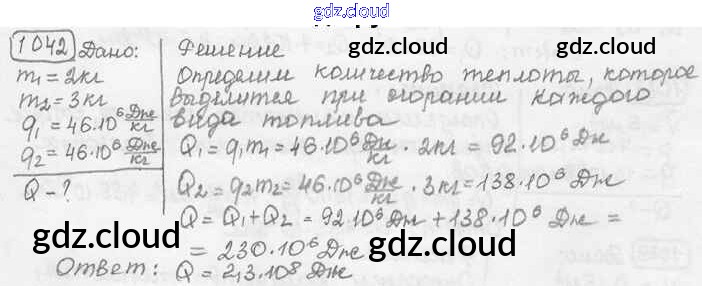 Ответ на задание 1042 Сборник задач Физика за 7, 8, 9 (седьмой, восьмой, девятый) класс Лукашик, Иванова 2011