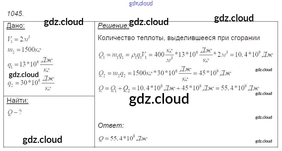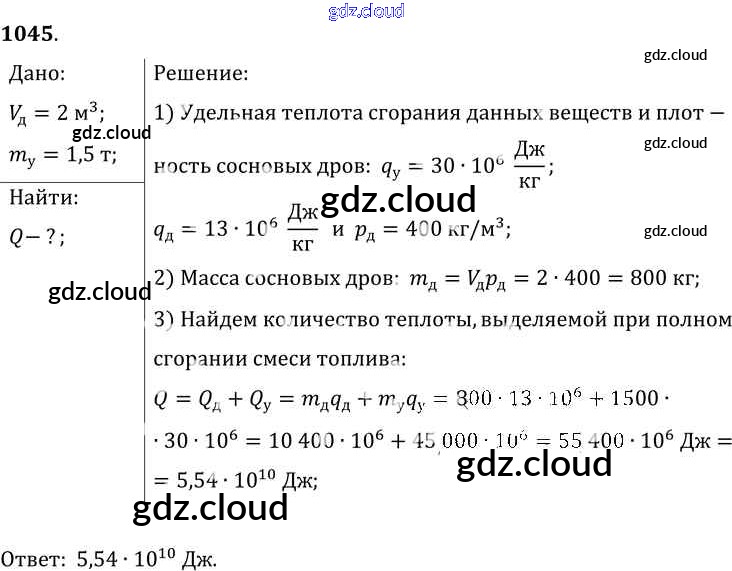 Ответ на задание 1045 Сборник задач Физика за 7, 8, 9 (седьмой, восьмой, девятый) класс Лукашик, Иванова 2011