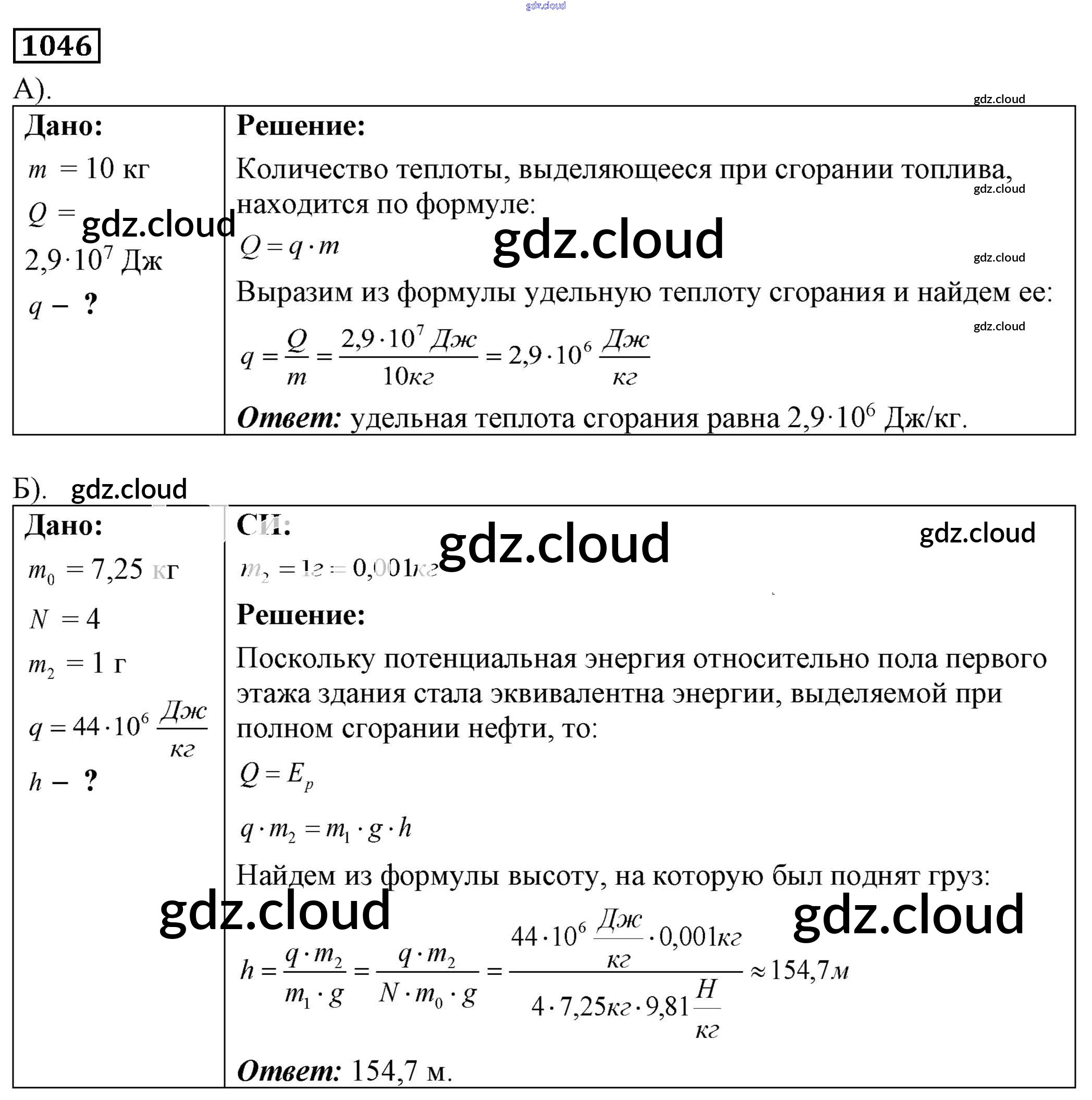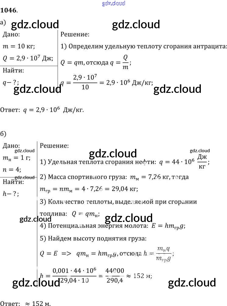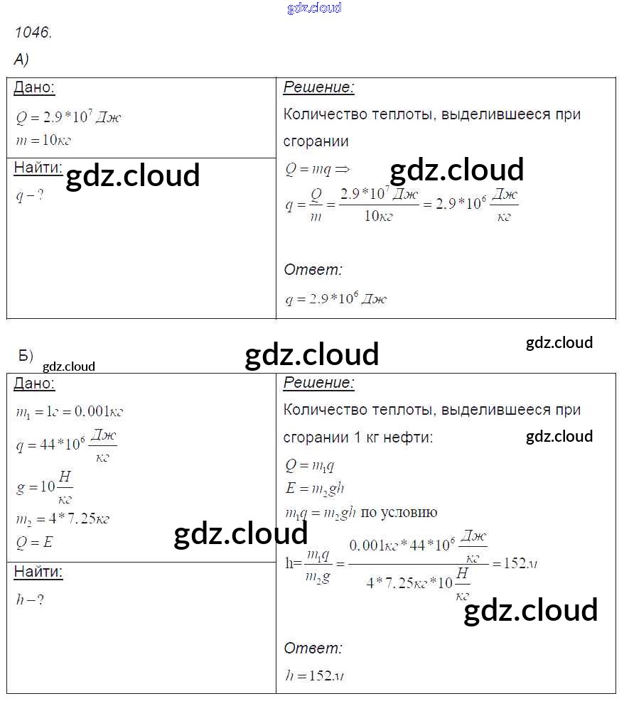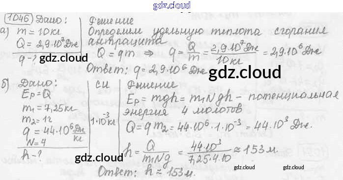 Ответ на задание 1046 Сборник задач Физика за 7, 8, 9 (седьмой, восьмой, девятый) класс Лукашик, Иванова 2011