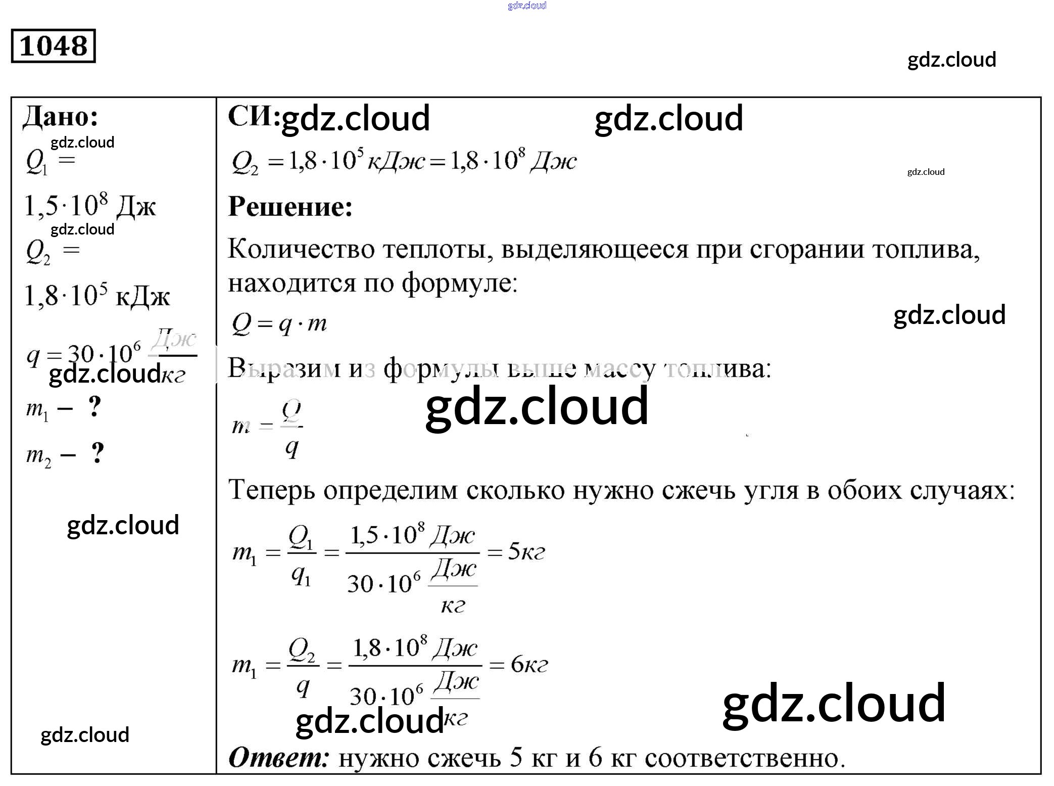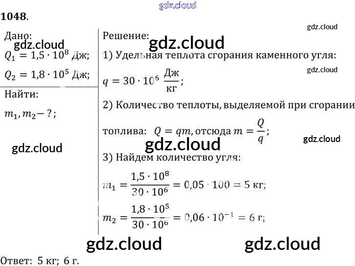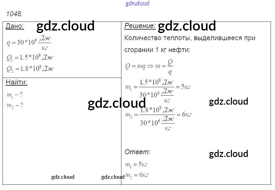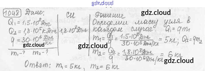 Ответ на задание 1048 Сборник задач Физика за 7, 8, 9 (седьмой, восьмой, девятый) класс Лукашик, Иванова 2011