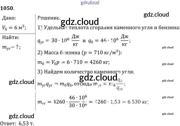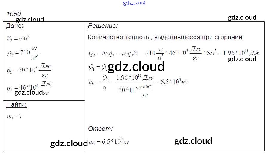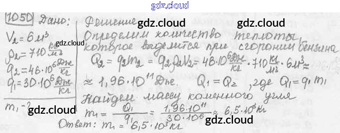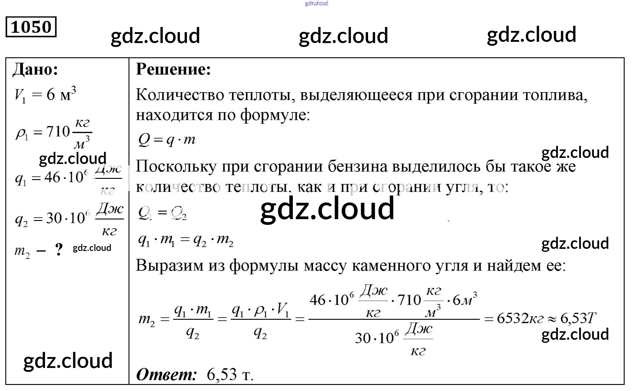 Ответ на задание 1050 Сборник задач Физика за 7, 8, 9 (седьмой, восьмой, девятый) класс Лукашик, Иванова 2011