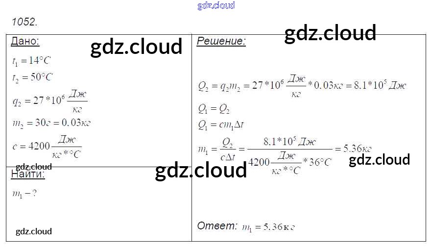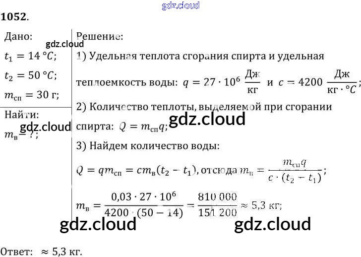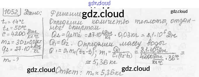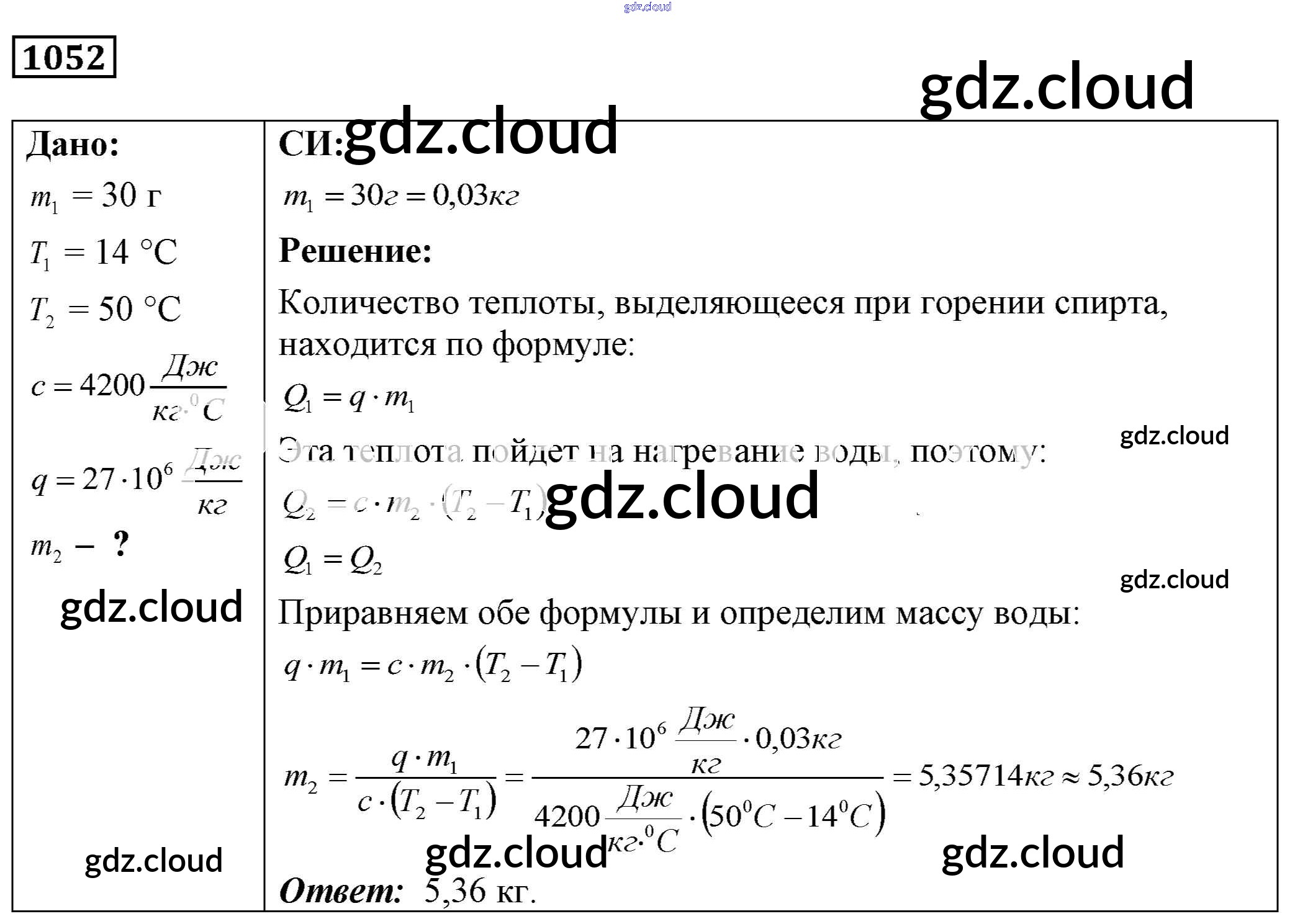 Ответ на задание 1052 Сборник задач Физика за 7, 8, 9 (седьмой, восьмой, девятый) класс Лукашик, Иванова 2011