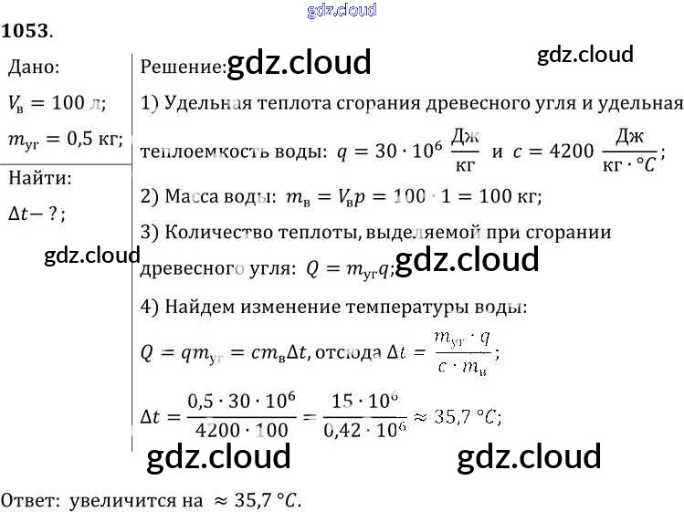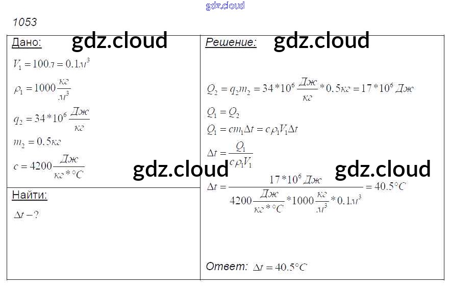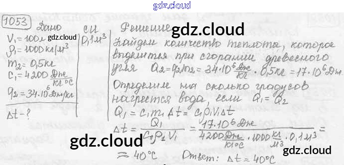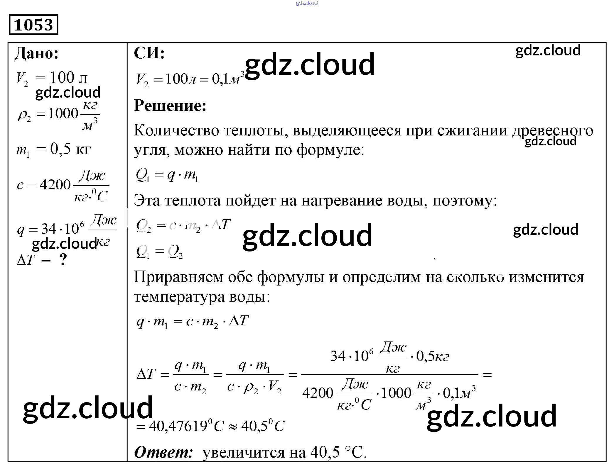 Ответ на задание 1053 Сборник задач Физика за 7, 8, 9 (седьмой, восьмой, девятый) класс Лукашик, Иванова 2011
