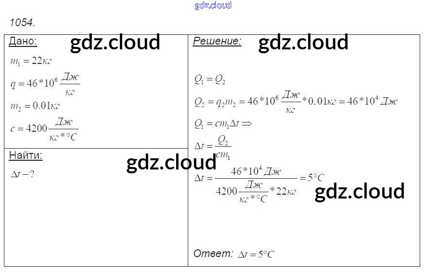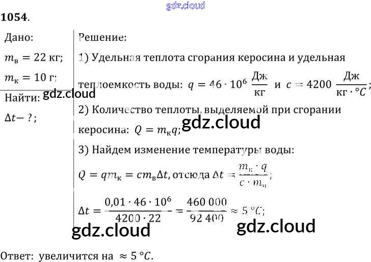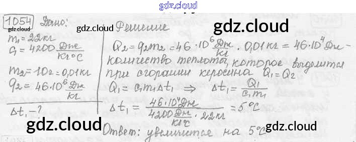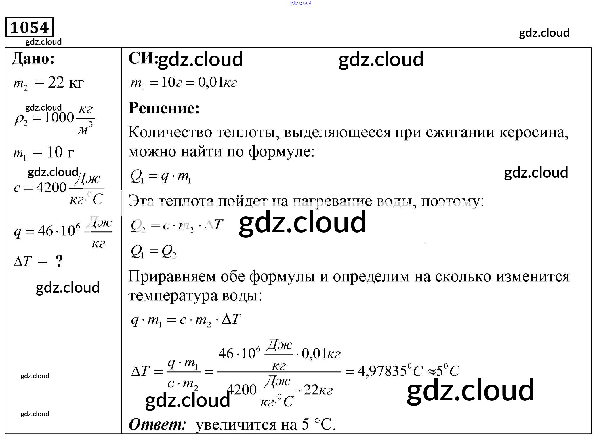 Ответ на задание 1054 Сборник задач Физика за 7, 8, 9 (седьмой, восьмой, девятый) класс Лукашик, Иванова 2011