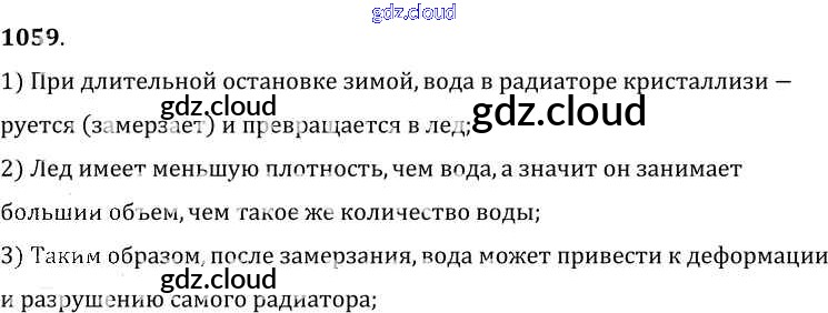 Ответ на задание 1059 Сборник задач Физика за 7, 8, 9 (седьмой, восьмой, девятый) класс Лукашик, Иванова 2011