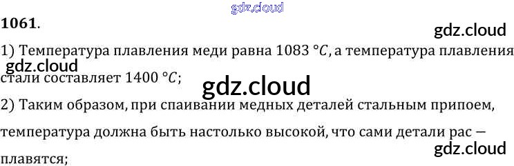 Ответ на задание 1061 Сборник задач Физика за 7, 8, 9 (седьмой, восьмой, девятый) класс Лукашик, Иванова 2011