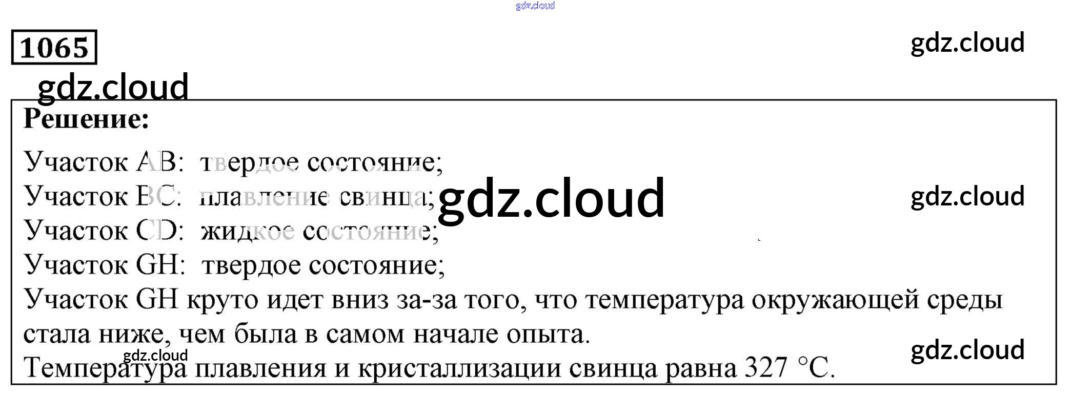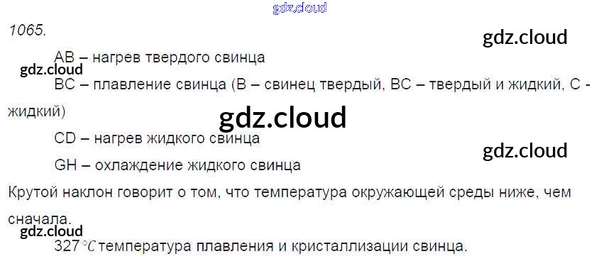 Ответ на задание 1065 Сборник задач Физика за 7, 8, 9 (седьмой, восьмой, девятый) класс Лукашик, Иванова 2011
