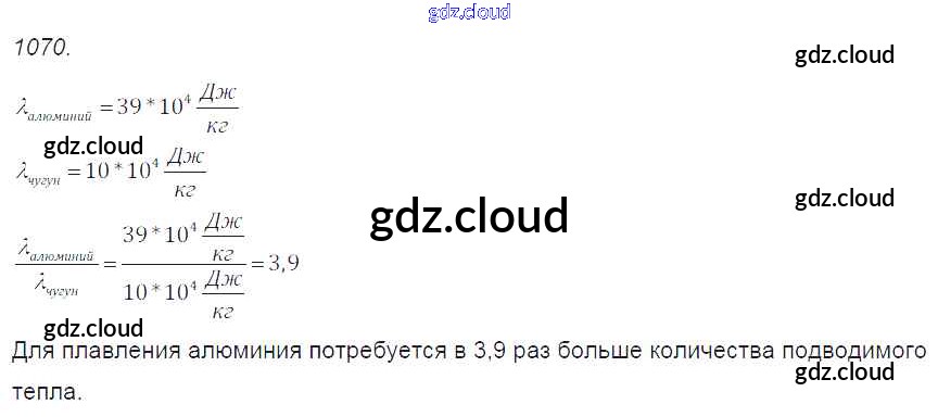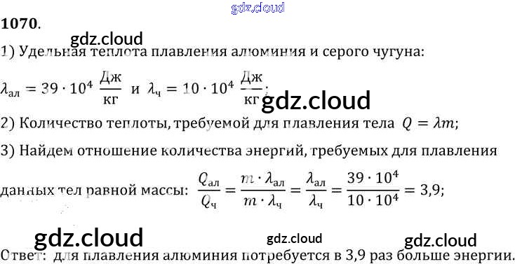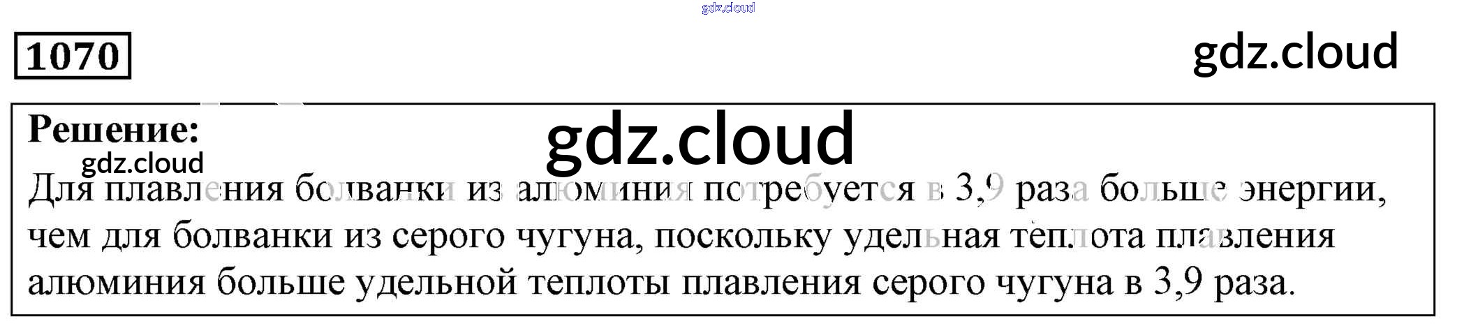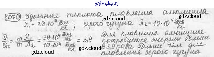 Ответ на задание 1070 Сборник задач Физика за 7, 8, 9 (седьмой, восьмой, девятый) класс Лукашик, Иванова 2011