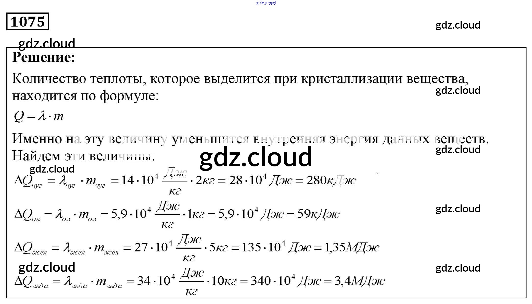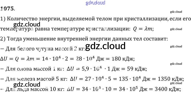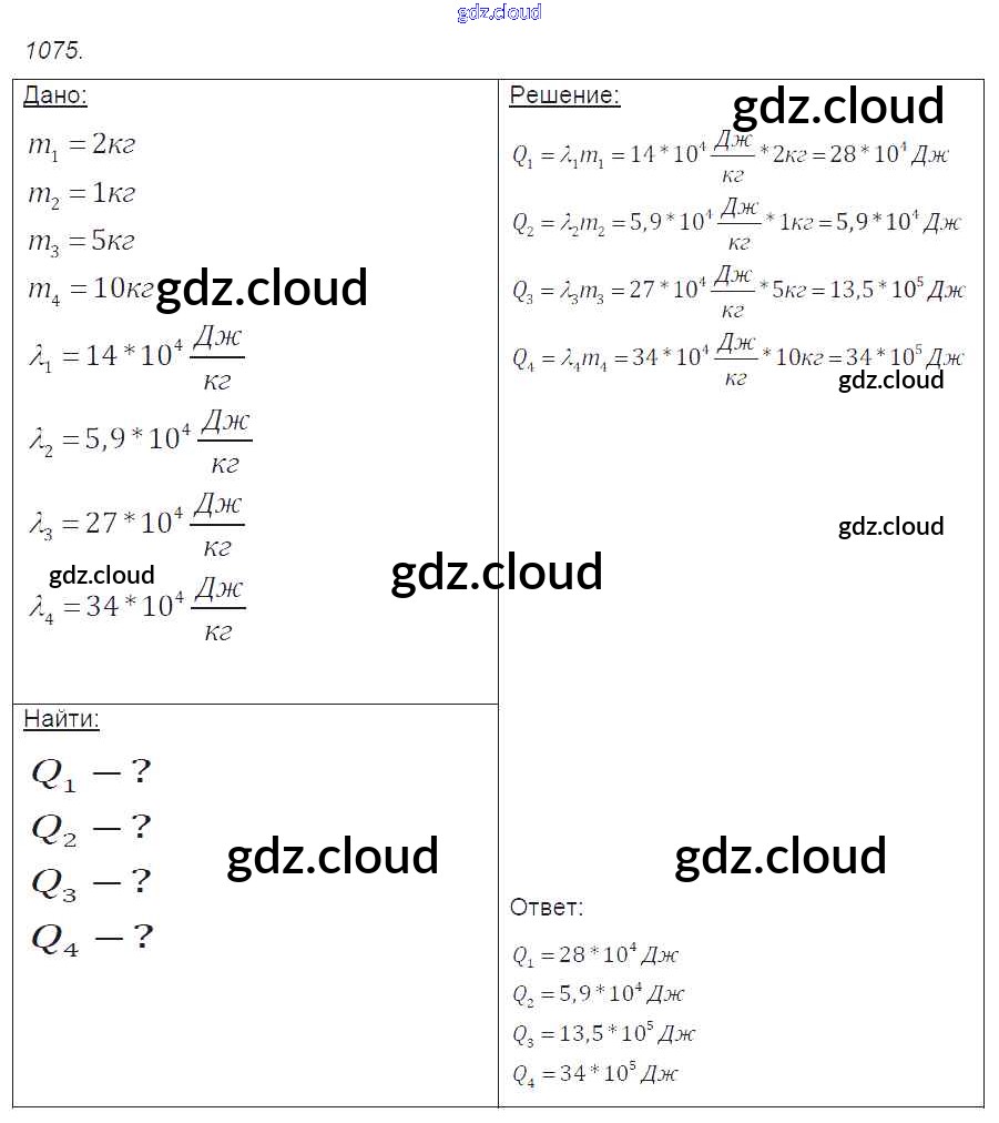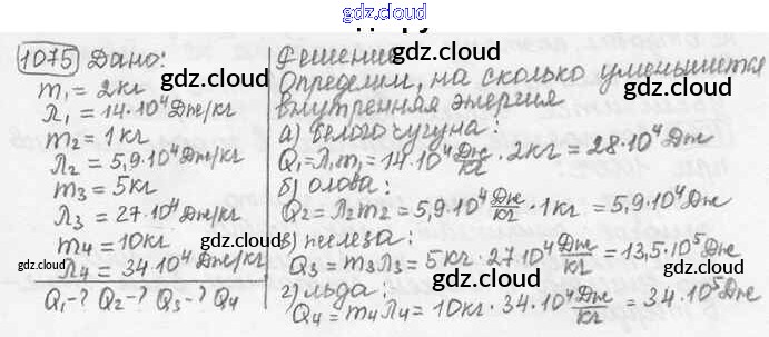 Ответ на задание 1075 Сборник задач Физика за 7, 8, 9 (седьмой, восьмой, девятый) класс Лукашик, Иванова 2011