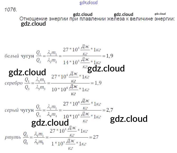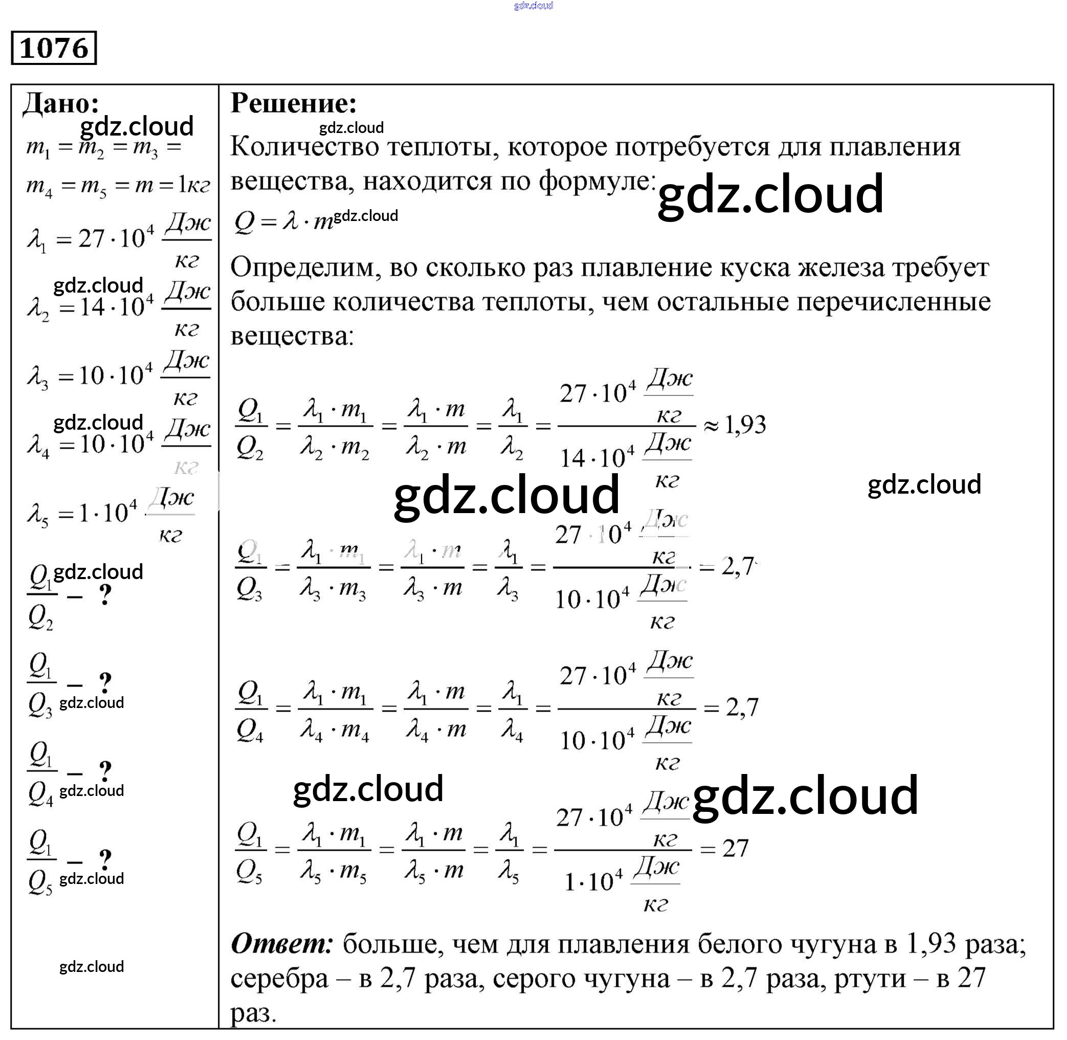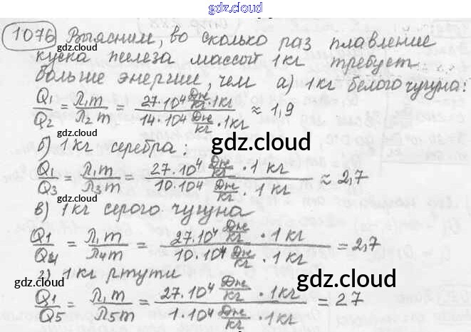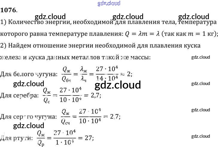 Ответ на задание 1076 Сборник задач Физика за 7, 8, 9 (седьмой, восьмой, девятый) класс Лукашик, Иванова 2011