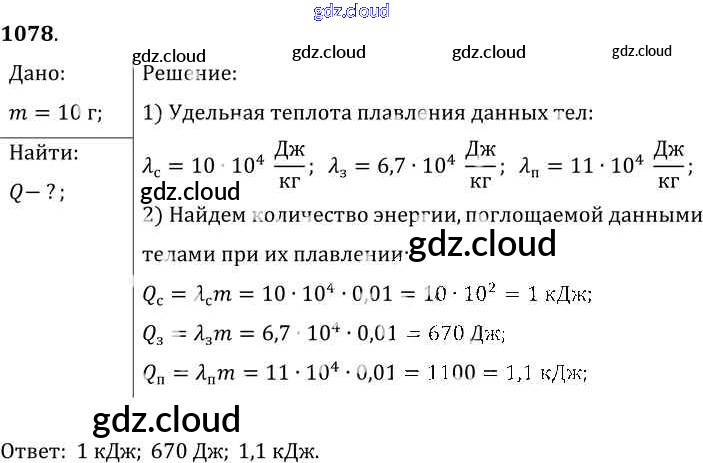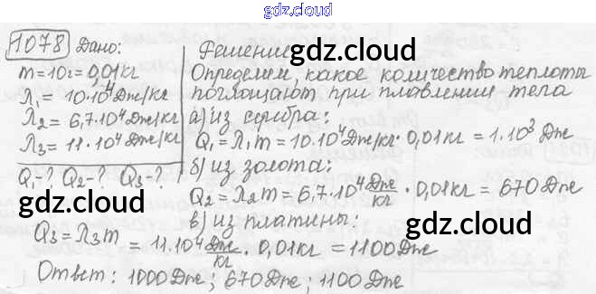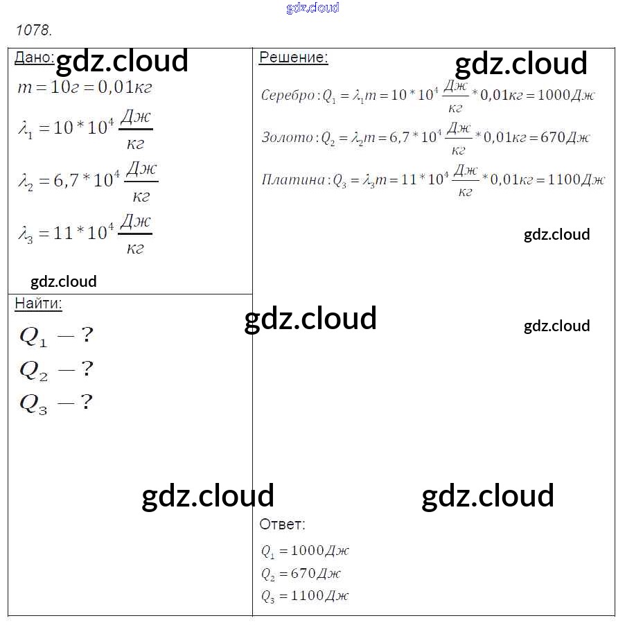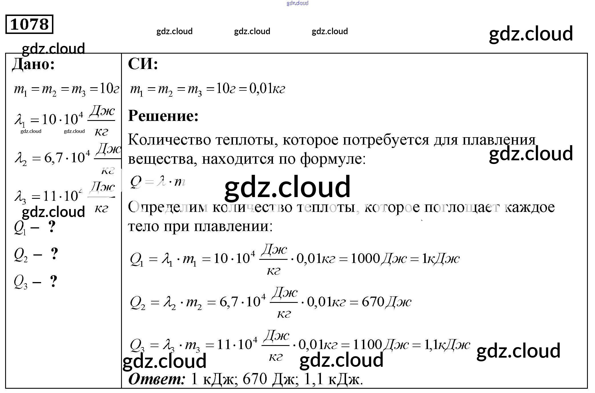Ответ на задание 1078 Сборник задач Физика за 7, 8, 9 (седьмой, восьмой, девятый) класс Лукашик, Иванова 2011