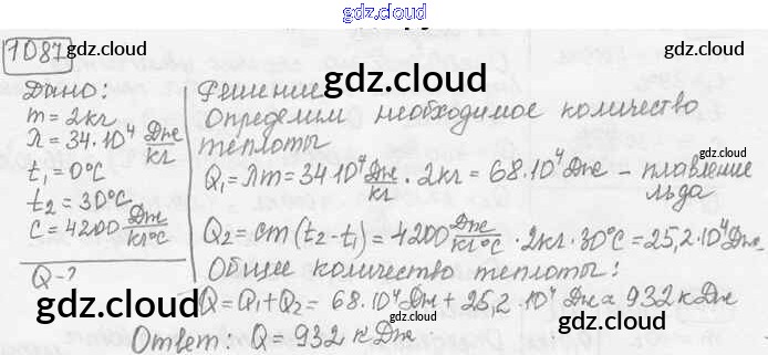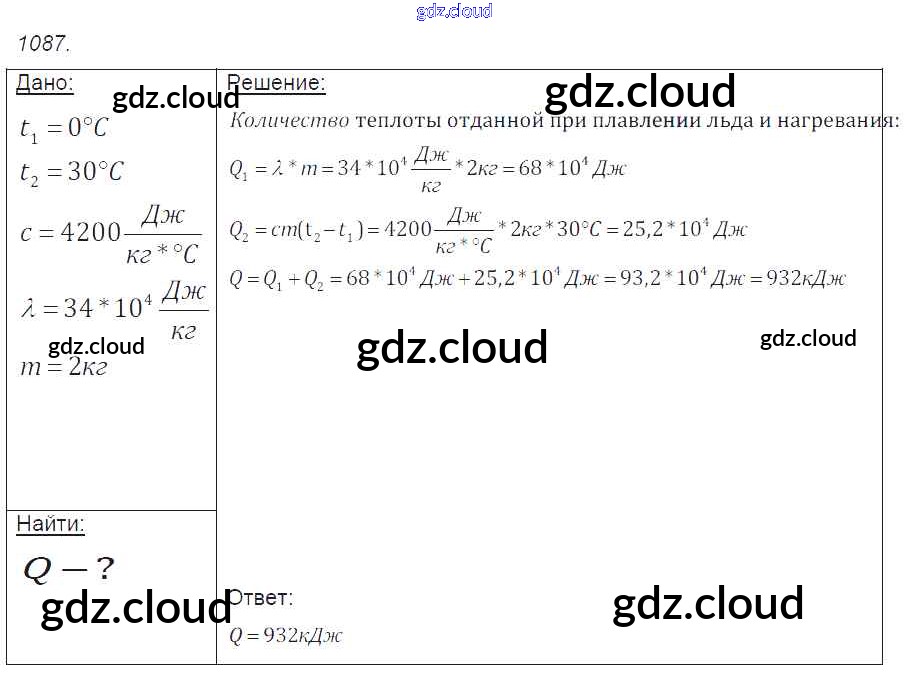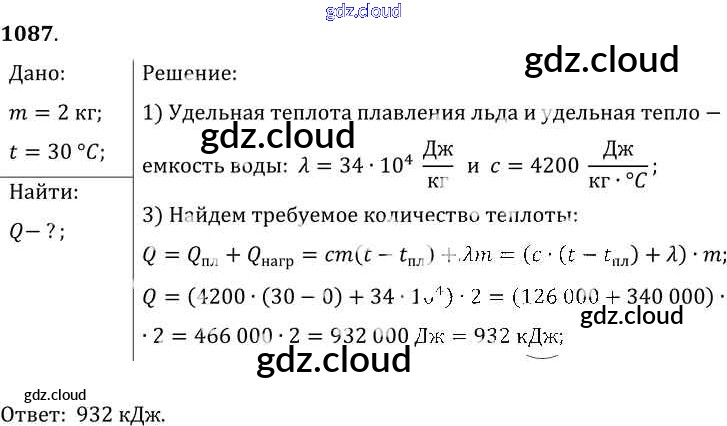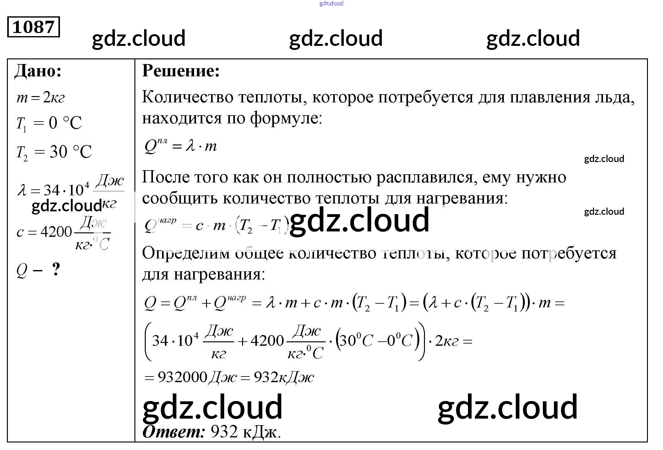 Ответ на задание 1087 Сборник задач Физика за 7, 8, 9 (седьмой, восьмой, девятый) класс Лукашик, Иванова 2011