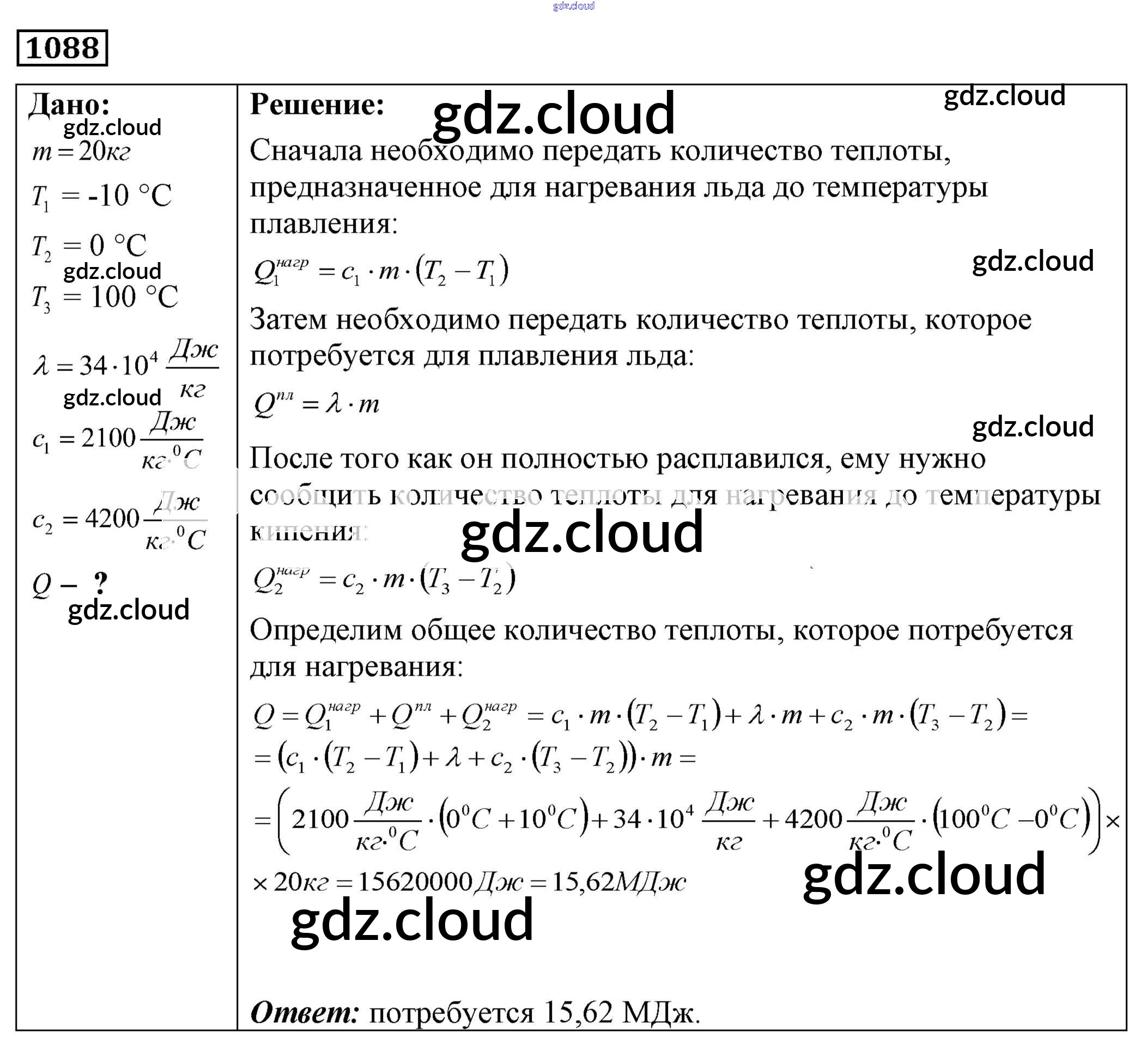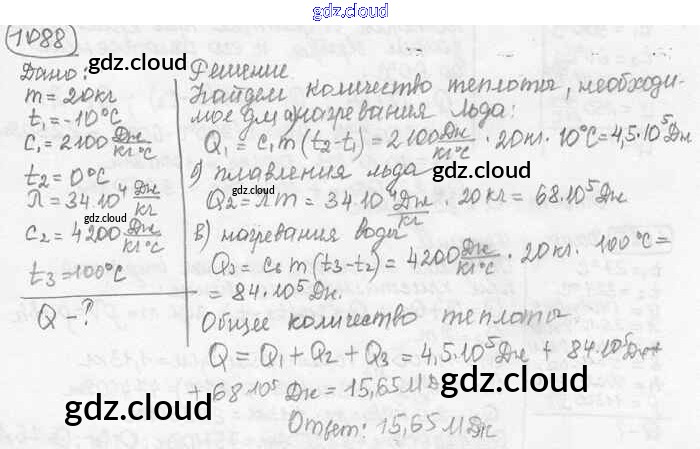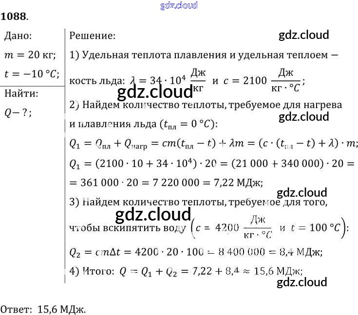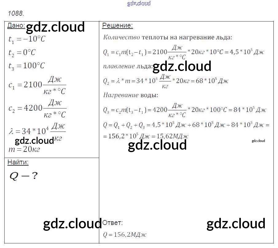 Ответ на задание 1088 Сборник задач Физика за 7, 8, 9 (седьмой, восьмой, девятый) класс Лукашик, Иванова 2011