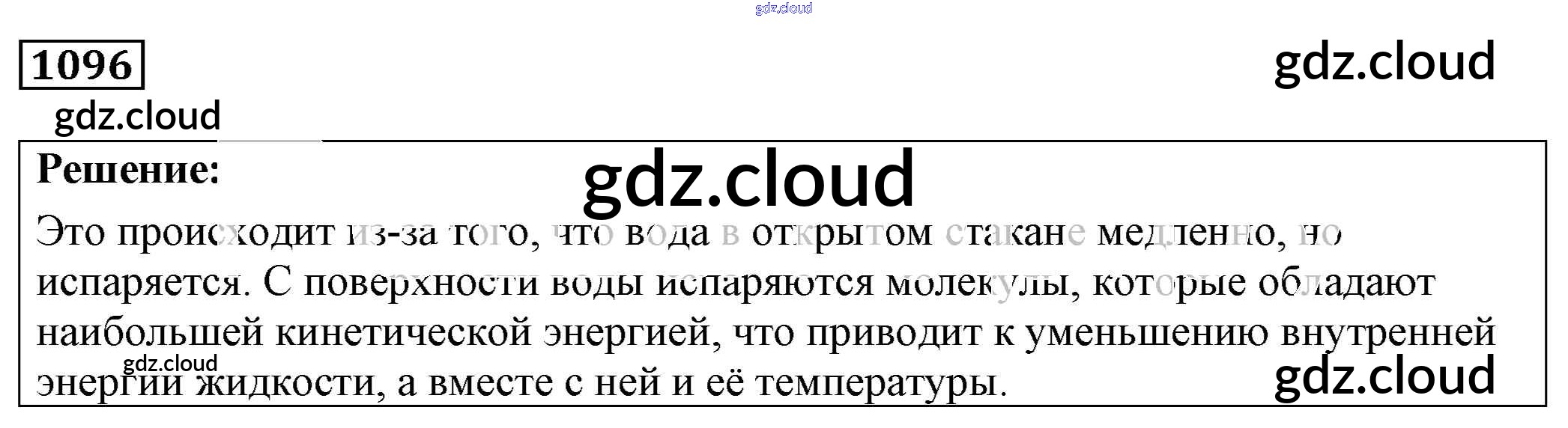 Ответ на задание 1096 Сборник задач Физика за 7, 8, 9 (седьмой, восьмой, девятый) класс Лукашик, Иванова 2011