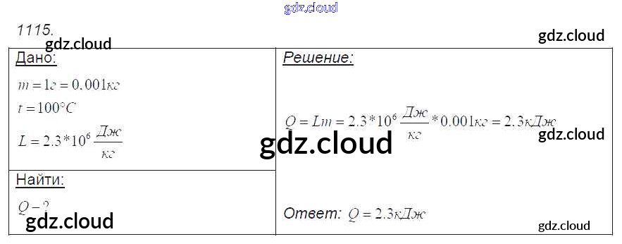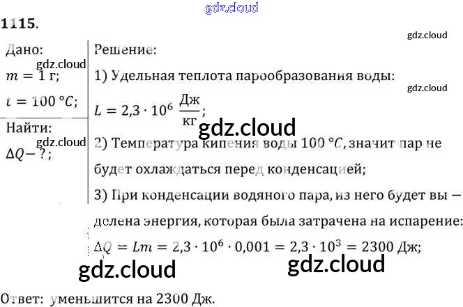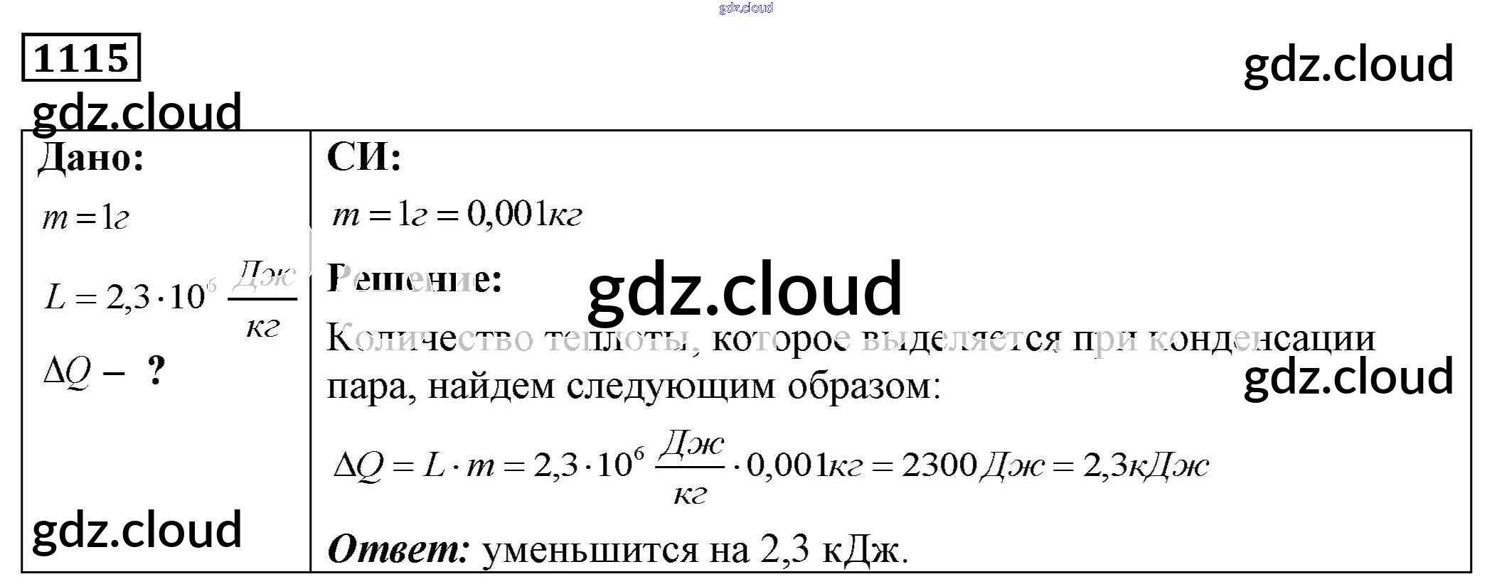 Ответ на задание 1115 Сборник задач Физика за 7, 8, 9 (седьмой, восьмой, девятый) класс Лукашик, Иванова 2011