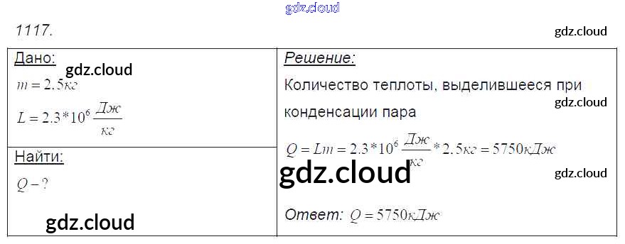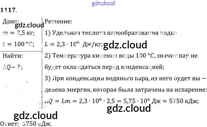 Ответ на задание 1117 Сборник задач Физика за 7, 8, 9 (седьмой, восьмой, девятый) класс Лукашик, Иванова 2011