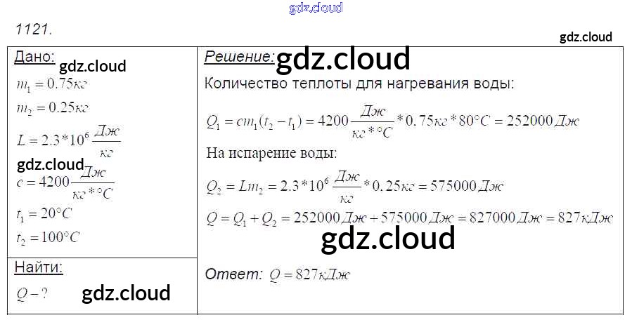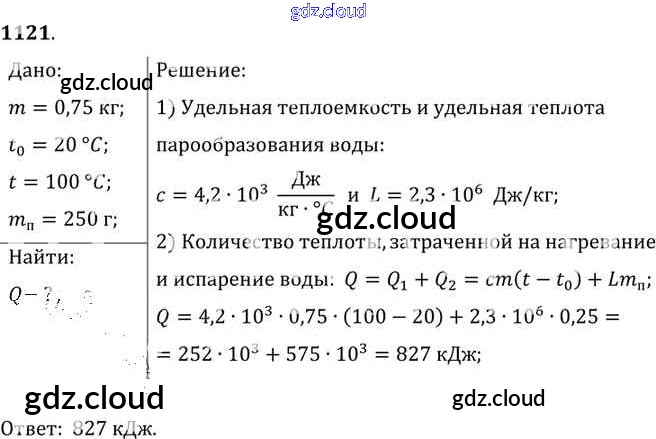 Ответ на задание 1121 Сборник задач Физика за 7, 8, 9 (седьмой, восьмой, девятый) класс Лукашик, Иванова 2011