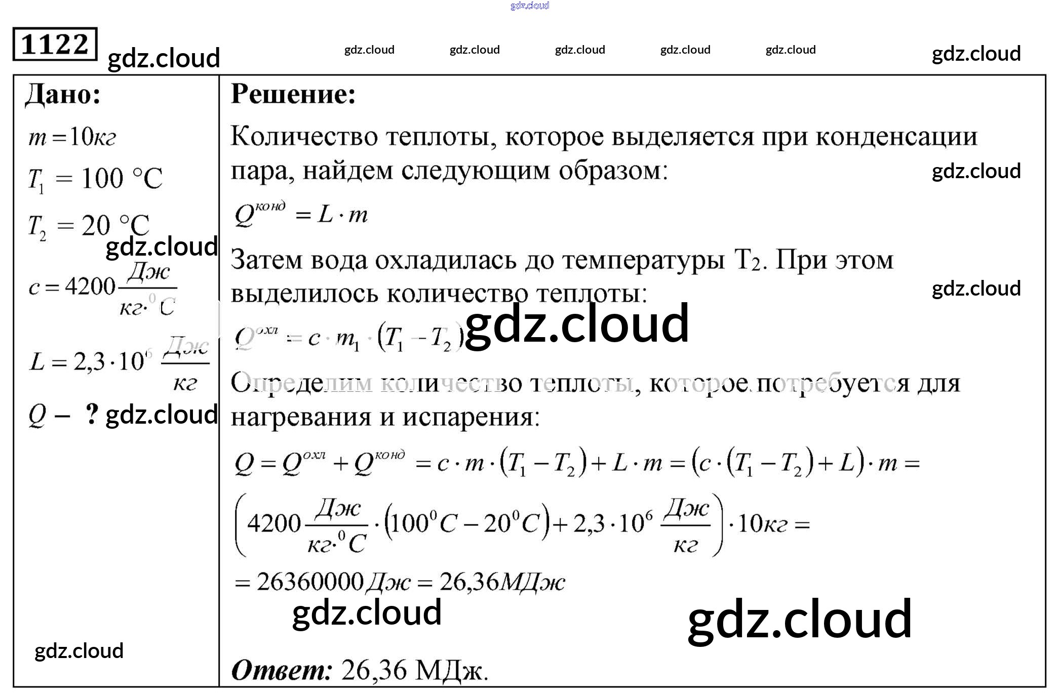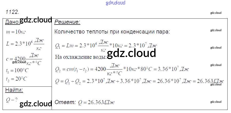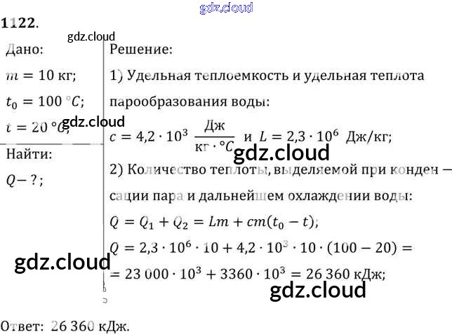 Ответ на задание 1122 Сборник задач Физика за 7, 8, 9 (седьмой, восьмой, девятый) класс Лукашик, Иванова 2011