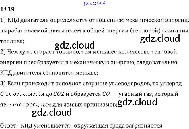Ответ на задание 1139 Сборник задач Физика за 7, 8, 9 (седьмой, восьмой, девятый) класс Лукашик, Иванова 2011