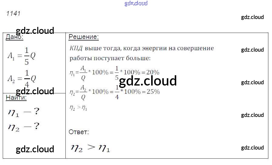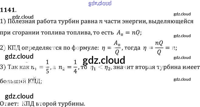 Ответ на задание 1141 Сборник задач Физика за 7, 8, 9 (седьмой, восьмой, девятый) класс Лукашик, Иванова 2011
