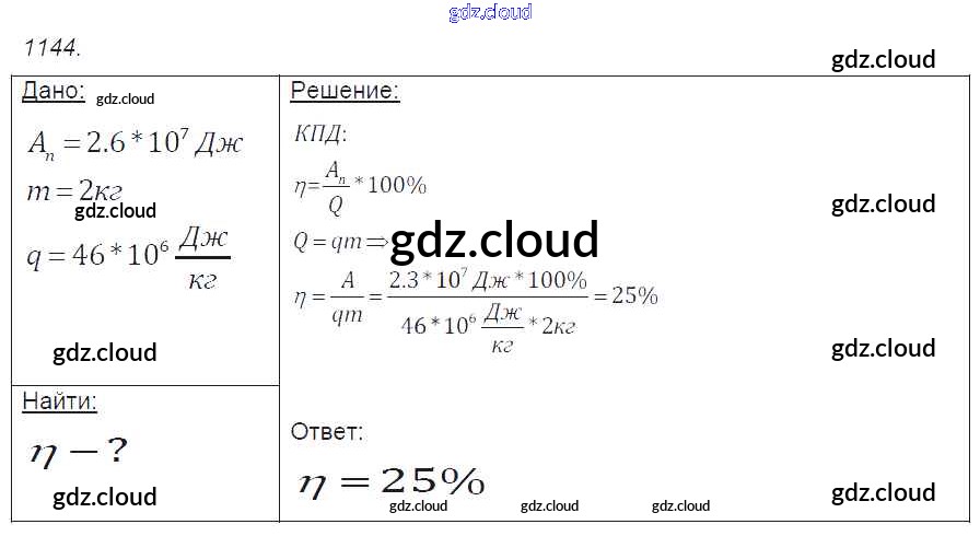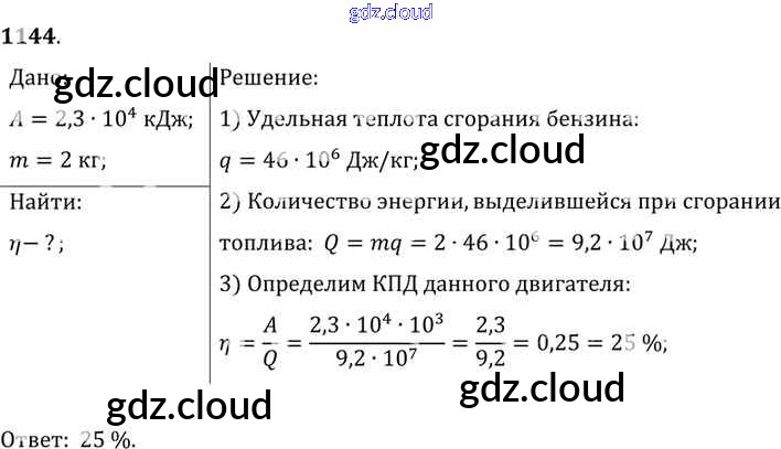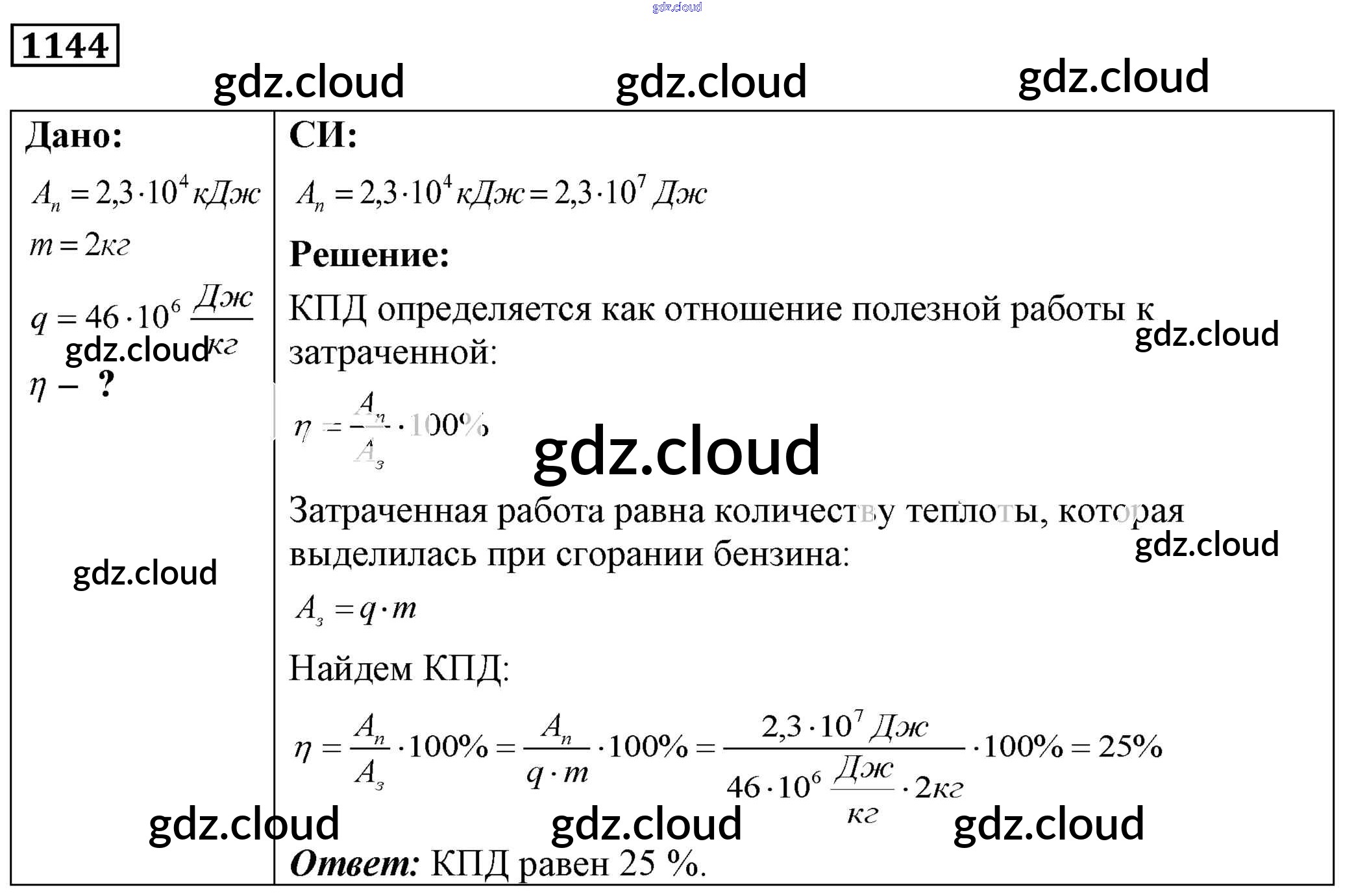 Ответ на задание 1144 Сборник задач Физика за 7, 8, 9 (седьмой, восьмой, девятый) класс Лукашик, Иванова 2011
