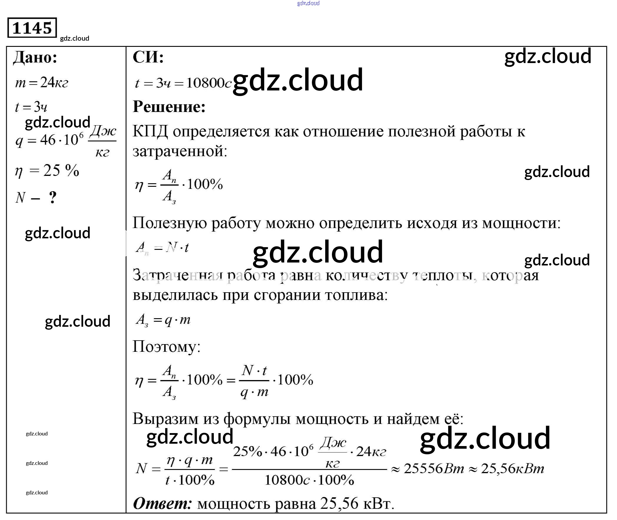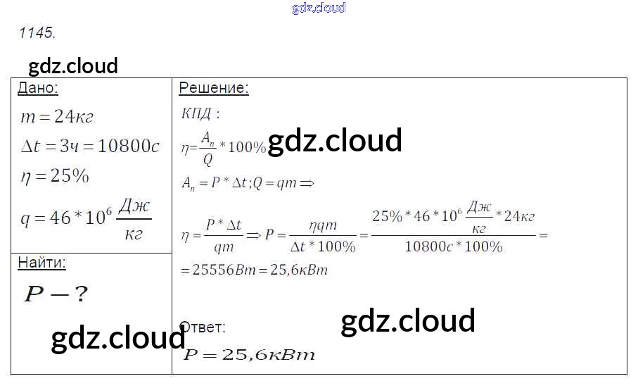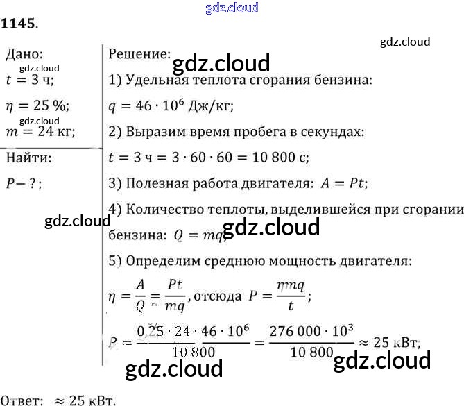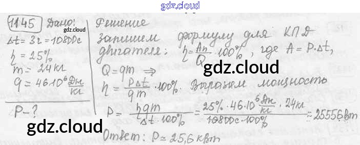Ответ на задание 1145 Сборник задач Физика за 7, 8, 9 (седьмой, восьмой, девятый) класс Лукашик, Иванова 2011
