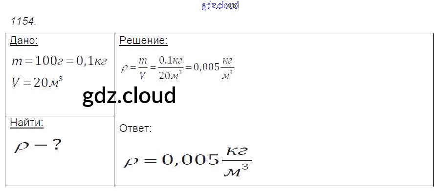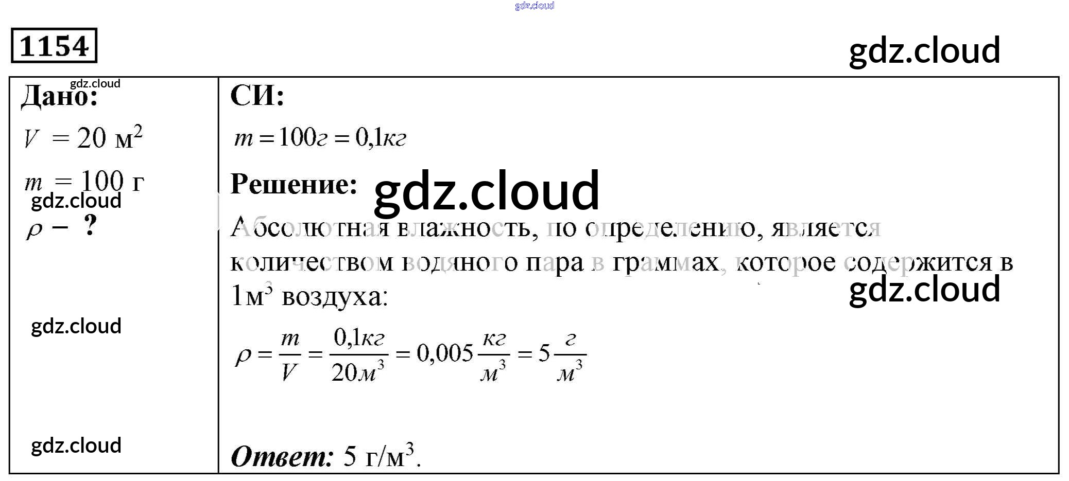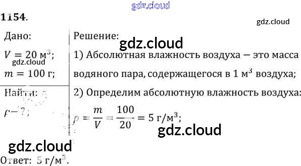 Ответ на задание 1154 Сборник задач Физика за 7, 8, 9 (седьмой, восьмой, девятый) класс Лукашик, Иванова 2011