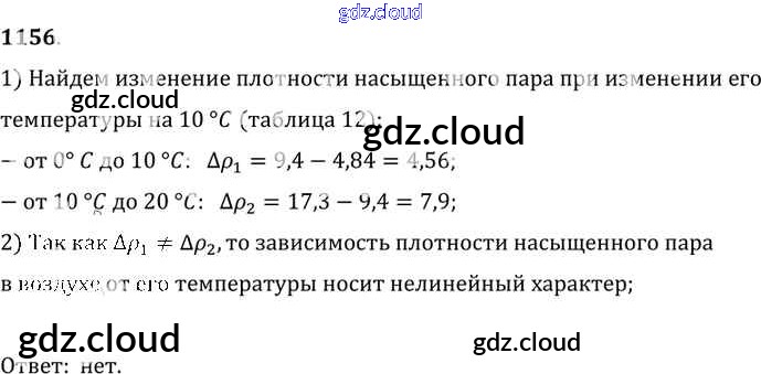 Ответ на задание 1156 Сборник задач Физика за 7, 8, 9 (седьмой, восьмой, девятый) класс Лукашик, Иванова 2011
