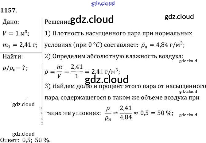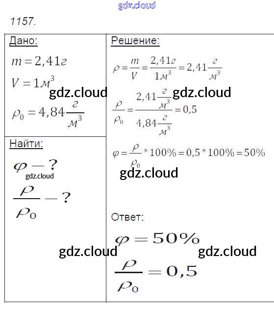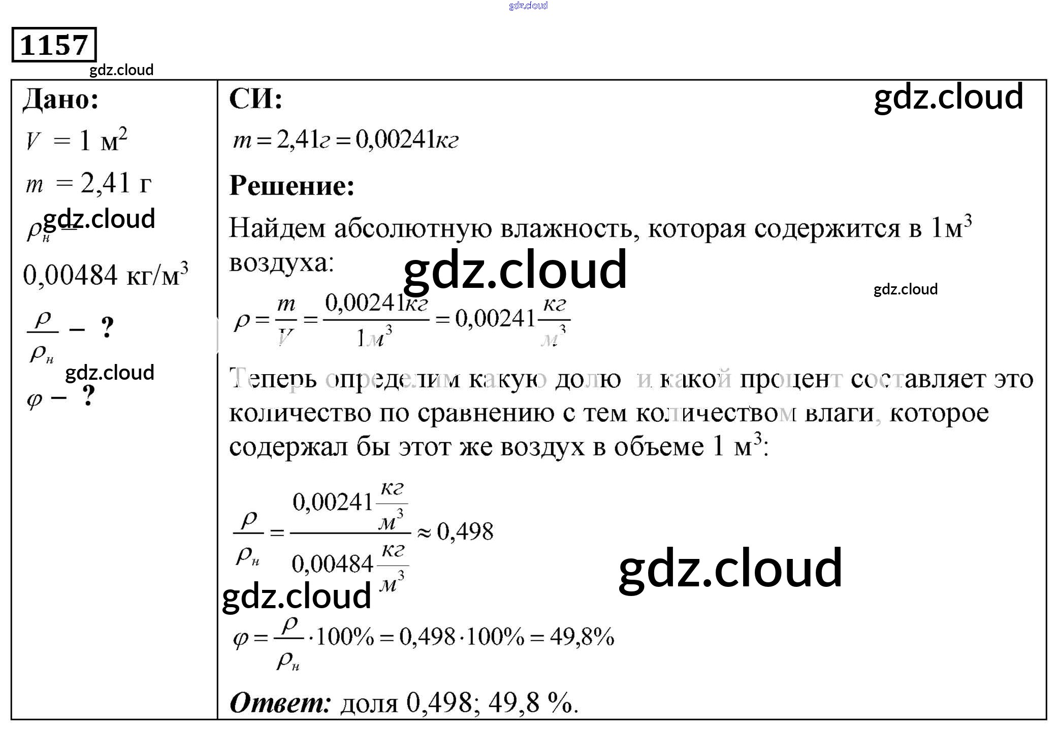 Ответ на задание 1157 Сборник задач Физика за 7, 8, 9 (седьмой, восьмой, девятый) класс Лукашик, Иванова 2011
